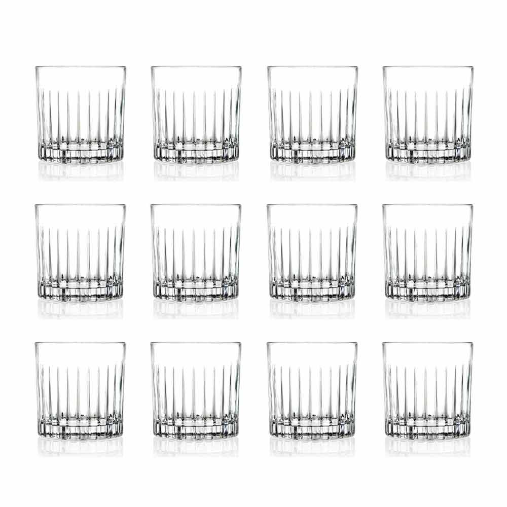12 luxury old fashioned glasses with a versatile design in decorated eco crystal 100% made in Italy.