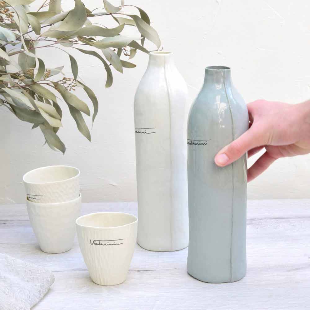 Made of the finest white or gray porcelain, these bottles give elegance and refinement to the table, for luxurious setting in company, evoking the sensuality and simplicity of the beauty of porcelain, without sacrificing its practicality.