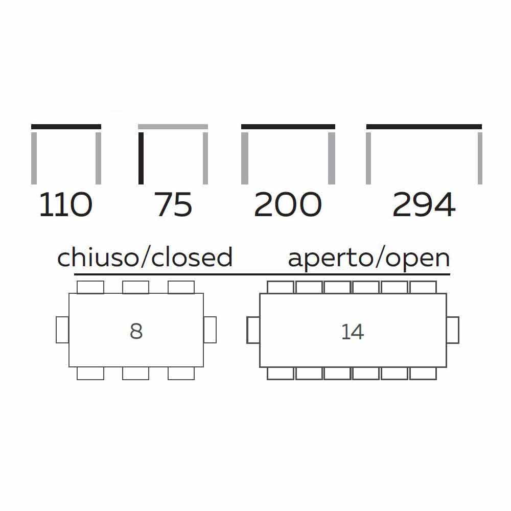 Modern dining table extendable up to 294 cm with stoneware top, high quality Made in Italy product.