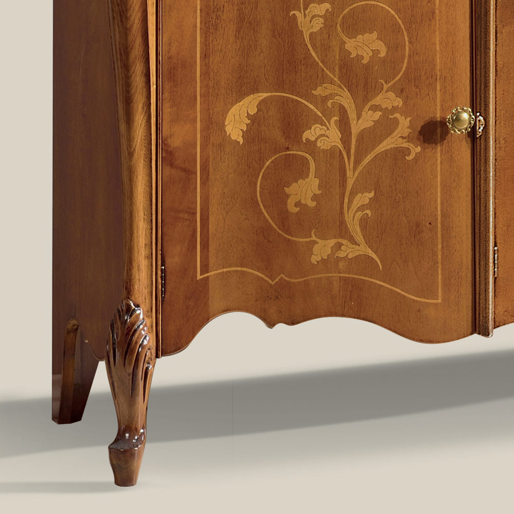 This classic style sideboard is perfect for decorating a living room, a study or a bedroom with style and elegance. It is made of wood in ivory, walnut or with Venetian decoration, and has 4 doors and 3 practical and spacious drawers . A unique and refined complement, completely made in Italy by skilled master craftsmen , masters of art who finish each complement with wisdom and taste for elegance. The production is carried out using fine materials , and performing the workbyhand with the utmost care and professionalism that distinguishes Made in Italy products.