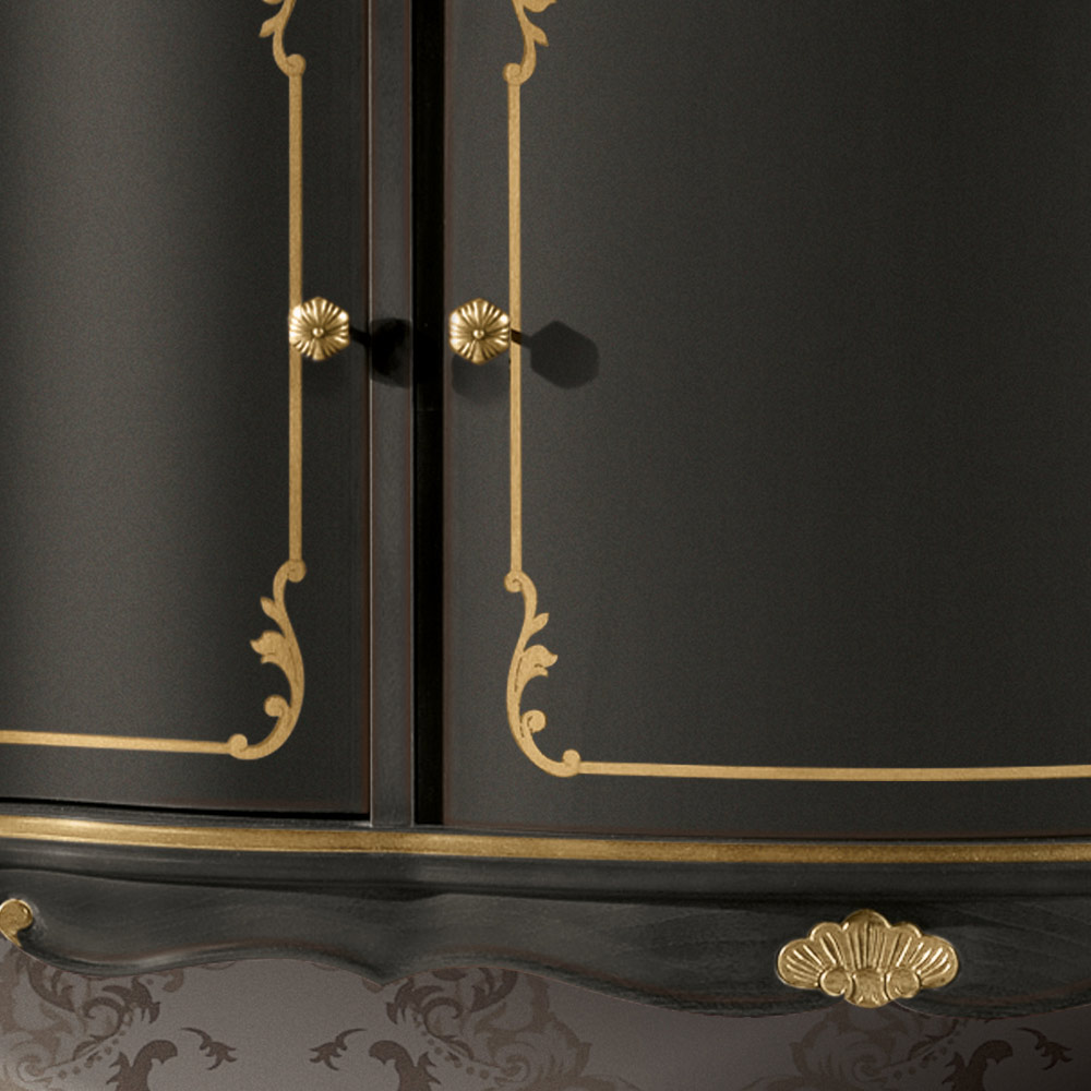 Living room sideboard with 3 doors and 3 drawers, made of inlaid wood and available in mocha wood or walnut wood finishes. A unique and refined complement, completely made in Italy by skilled master craftsmen , masters of art who finish each complement with wisdom and taste for elegance. The production is carried out using fine materials , and performing the workbyhand with the utmost care and professionalism that distinguishes Made in Italy products.
