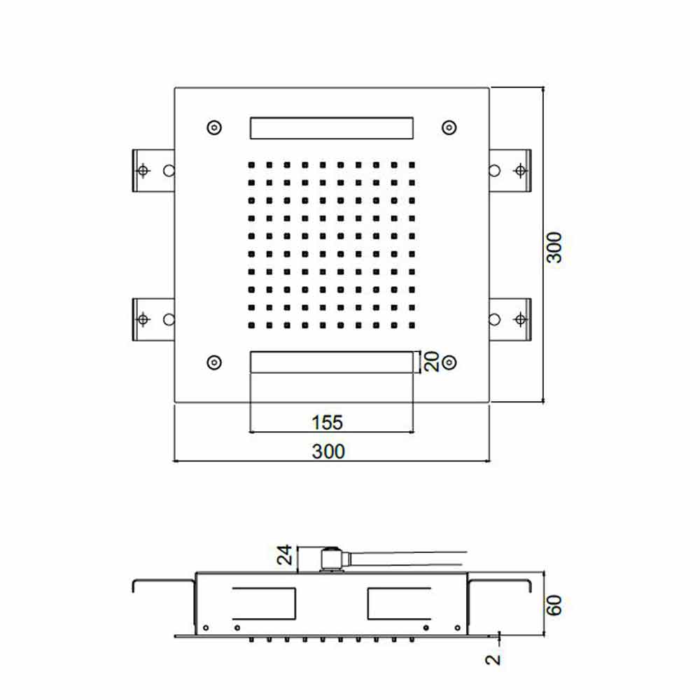 Square stainless steel shower head with chromotherapy, high quality Made in Italy item.