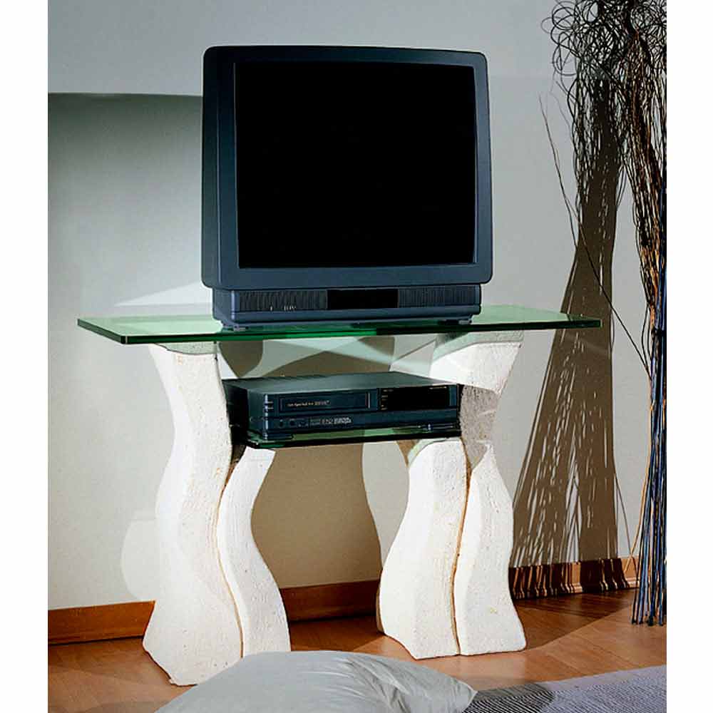 The TV stand Khloe is entirely made in Italy. Its base is made of Vicenza natural stone and it is provided with 2 crystal shelves( 15 mm thick). The natural stone has been treated with ecological water-base impregnator, in order to make the cleansing process easier.