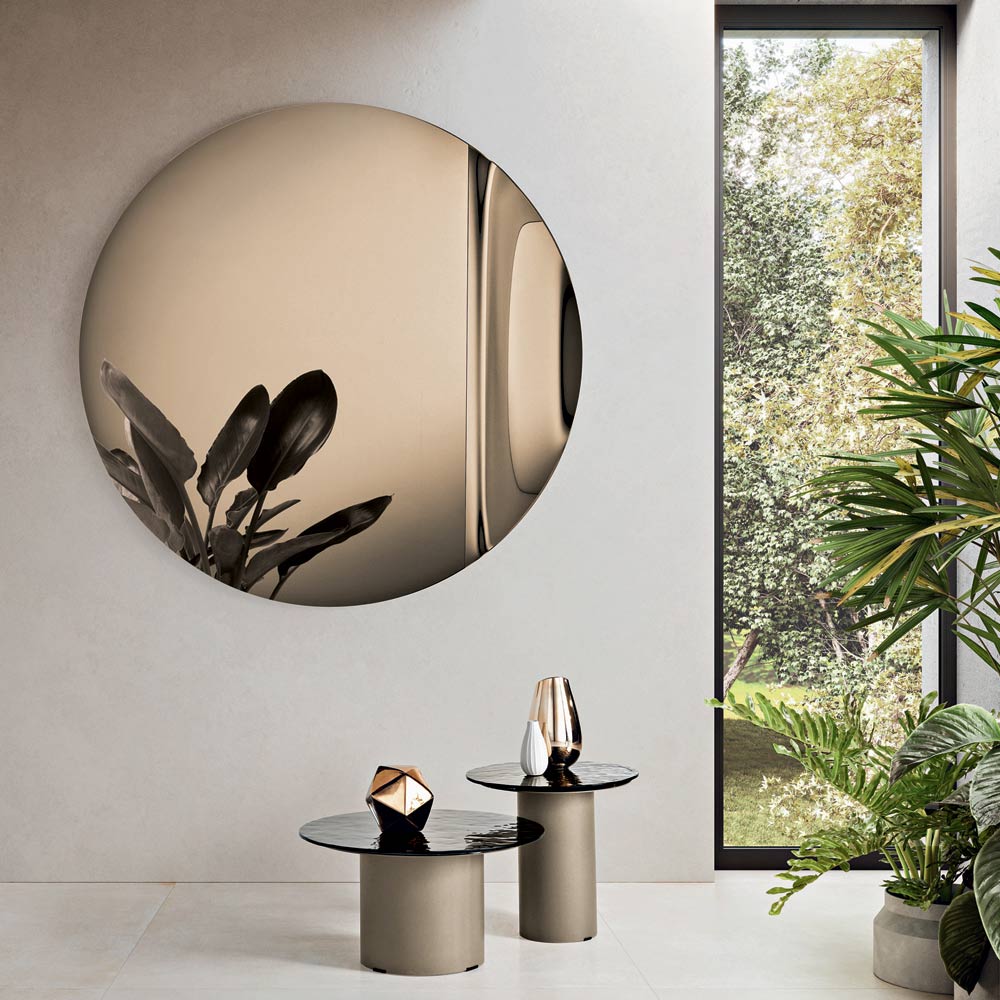 Thanks to its design balanced between geometry and movement, this mirror becomes a sophisticated furnishing accessory capable of enriching the wall with discretion and elegance, adapting perfectly to modern and contemporary environments.