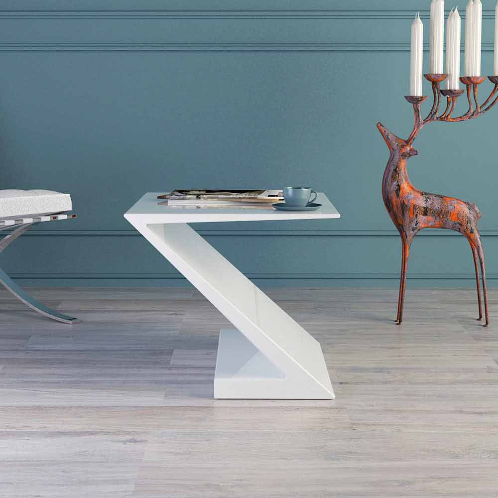 Coffee table made of Solid Surface in the form of Z, from which the name derives. Zeta is a coffee table with a minimalist design. Everything comes from a line, from a sign that takes shape and becomes a practical table suitable for any context, from the simplest and most common to the most sought after. Zeta is a furnishing accessory of class, which manages to give elegance and quality to a simple object such as the table. Featuring a white gloss / matte finish (RAL9003).