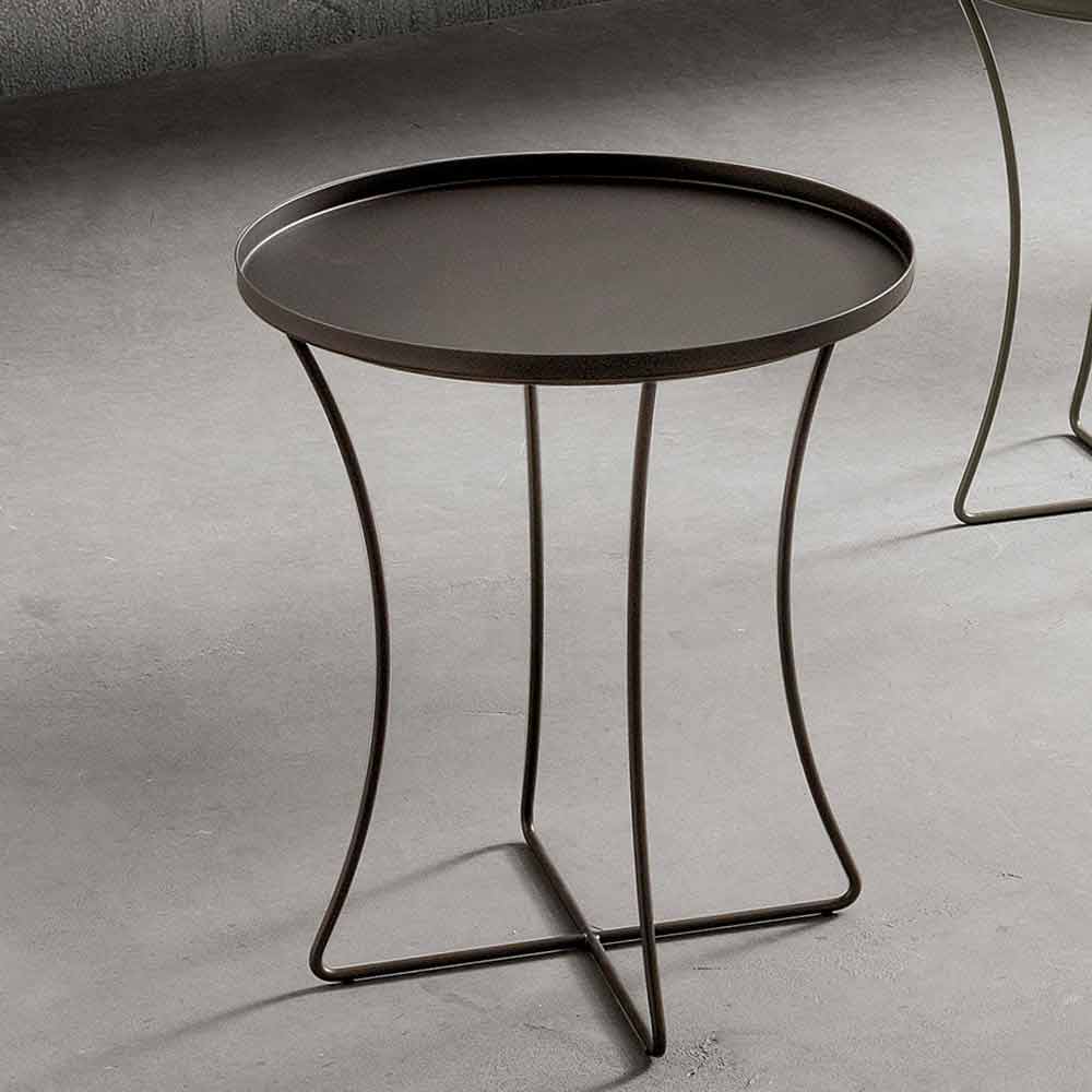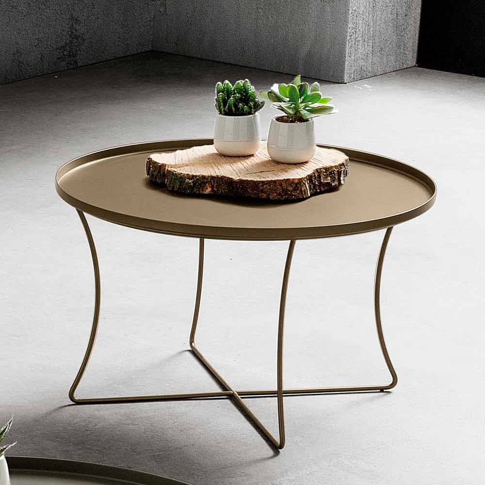 Coffee table with round top and epoxy powder coated metal base. From the 100% Made in Italy processing and the use of quality raw materials , a piece of furniture with a unique design is born, capable of enriching and completing the style of any modern living space, bringing with it an exclusive and innovative touch . Its aesthetic is characterized by simple lines that play on the use of soft curves for a refined and elegant result . The choice of using metal blends with the wonderful finishes proposed to create a unique furnishing idea with a strong visual impact, managing to characterize the entire room with its fascinating personality. The two available sizes also make it possible to create wonderful compositions for an even more surprising and captivating result thanks to an unusual play of different heights and shades.
