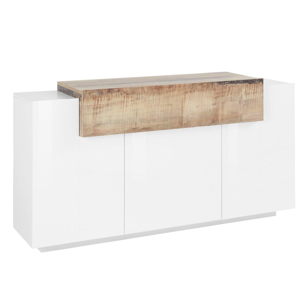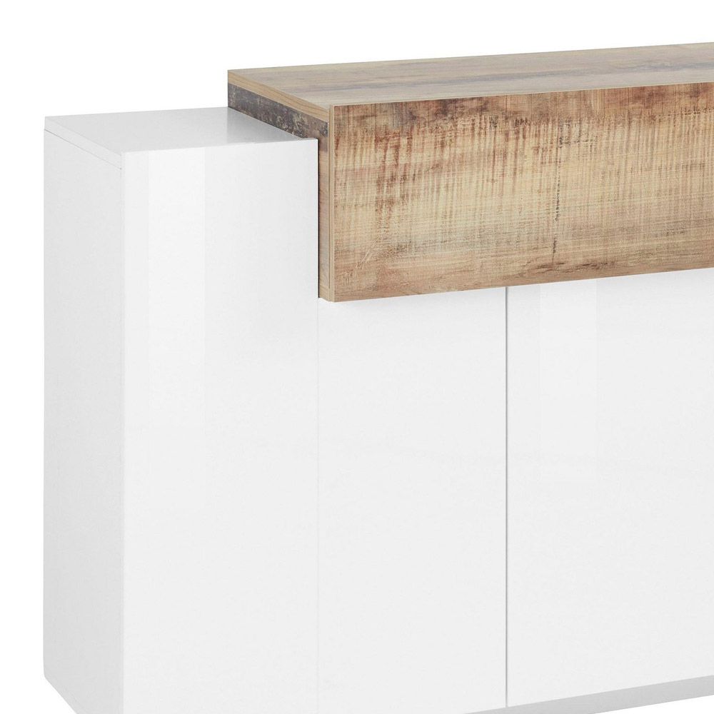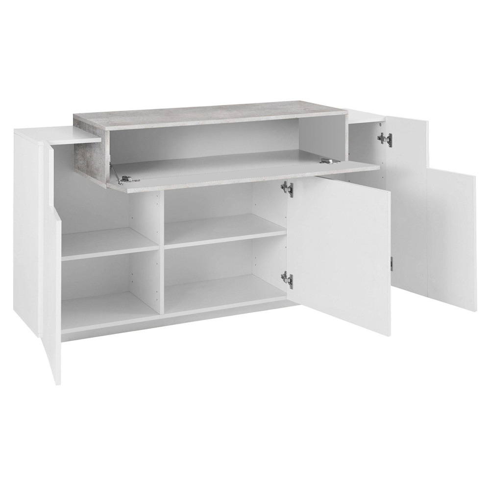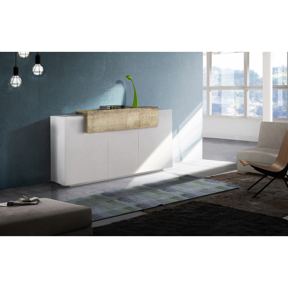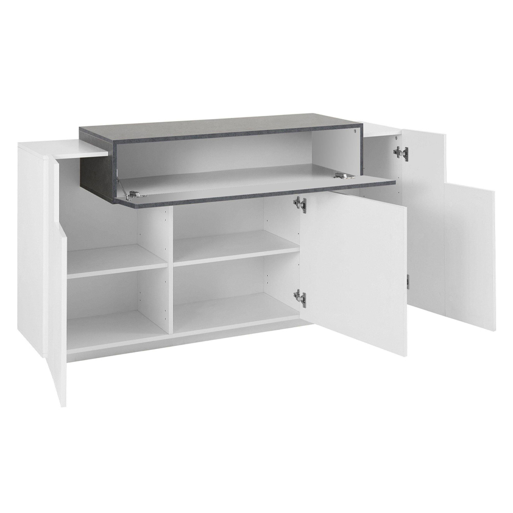 Sideboard with 4 doors in glossy white and anthracite wood, concrete or maple of living room design made in Italy.