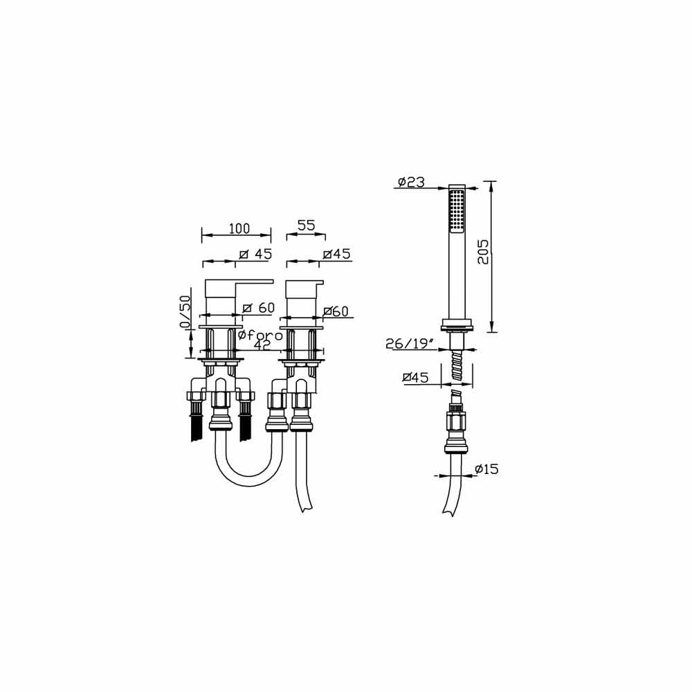 Modern 3-Hole Brass Bathtub Mixer Made in Italy - Bibo