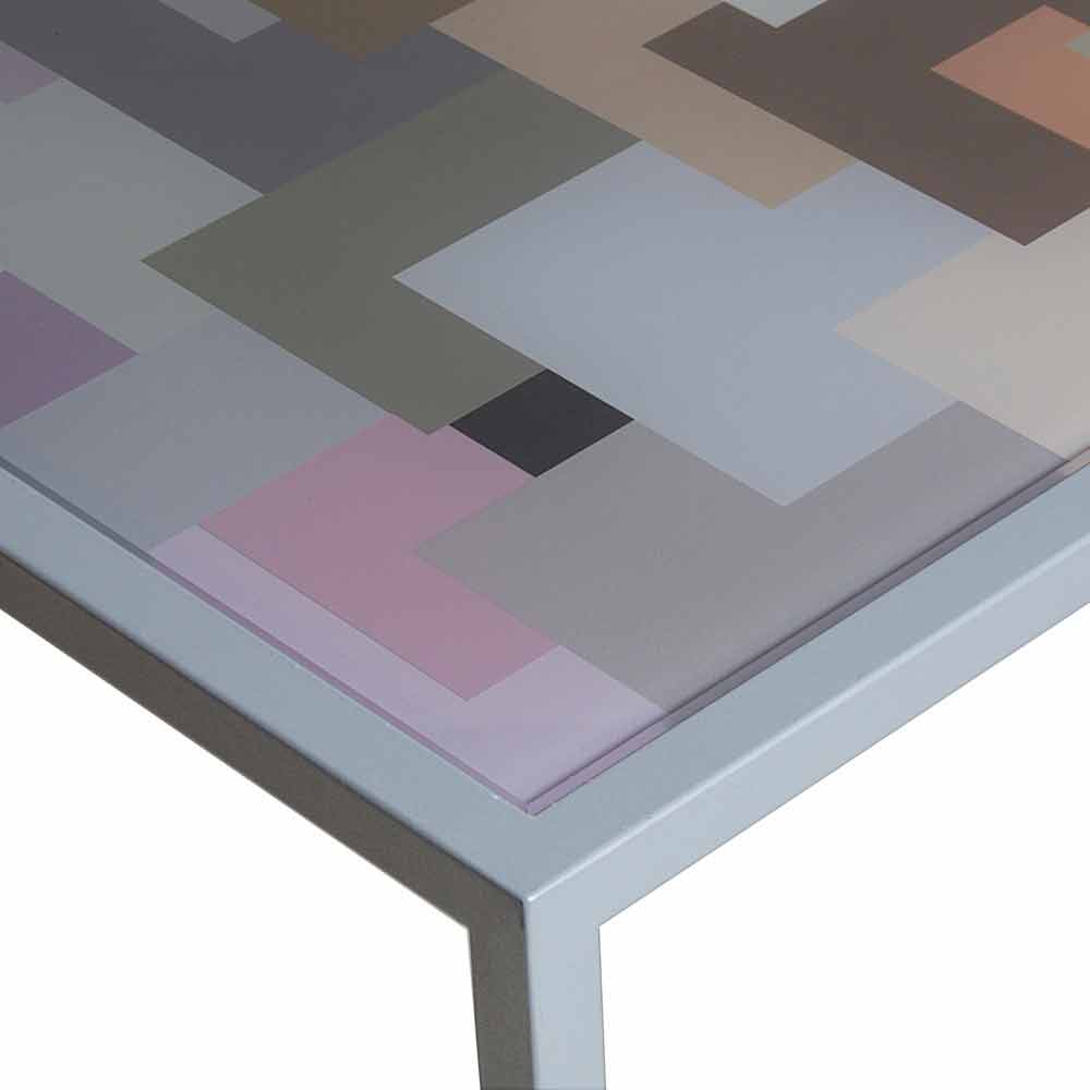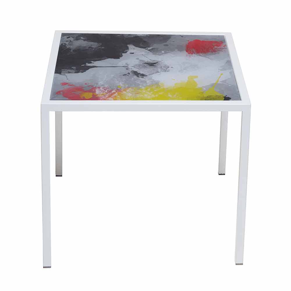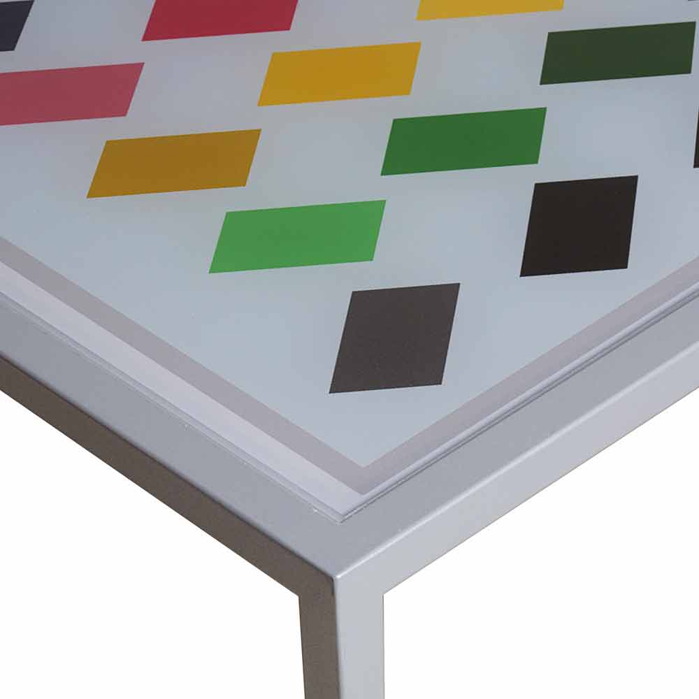 Nina is a design coffee table with lacquered metal structure with a choice of silver or white colors. The 0.8 cm thick top is made of retro printed polycarbonate, all made in Italy.