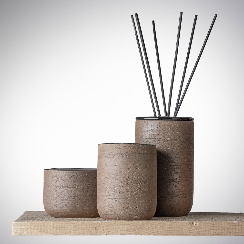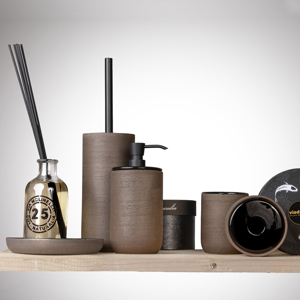 Countertop bathroom accessories in clay and dark earths Made in Italy.