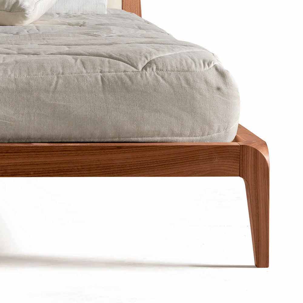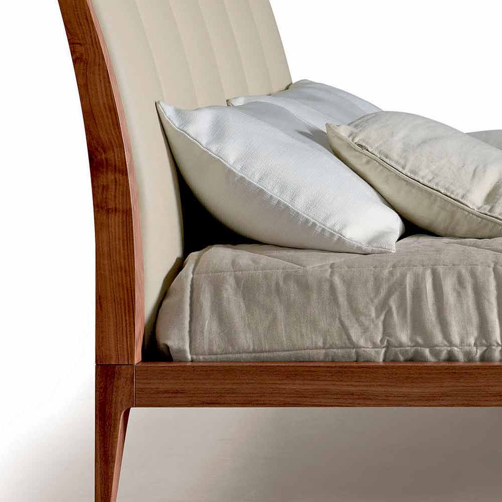 In this solution the most harmonious bed offers a padded headboard, embellished with seams that trace vertical lines. Essential and elegant, it is made of oil-finished solid walnut, to be inserted in the most refined furnishing contexts.