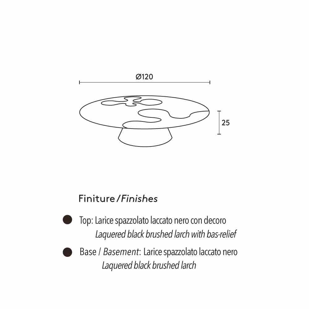 The coffee table Giglio is characterized by a modern and original design. The conical central leg and the table top are made of thermo-treated brushed larch wood.