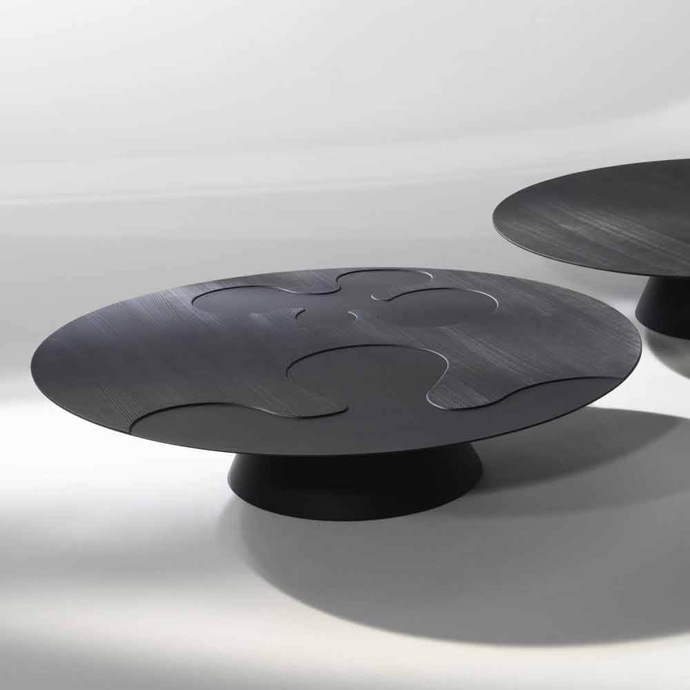 Modern black coffee table made of larch wood Giglio, made in Italy