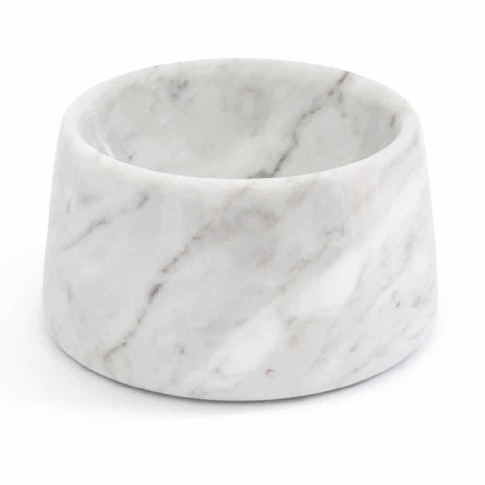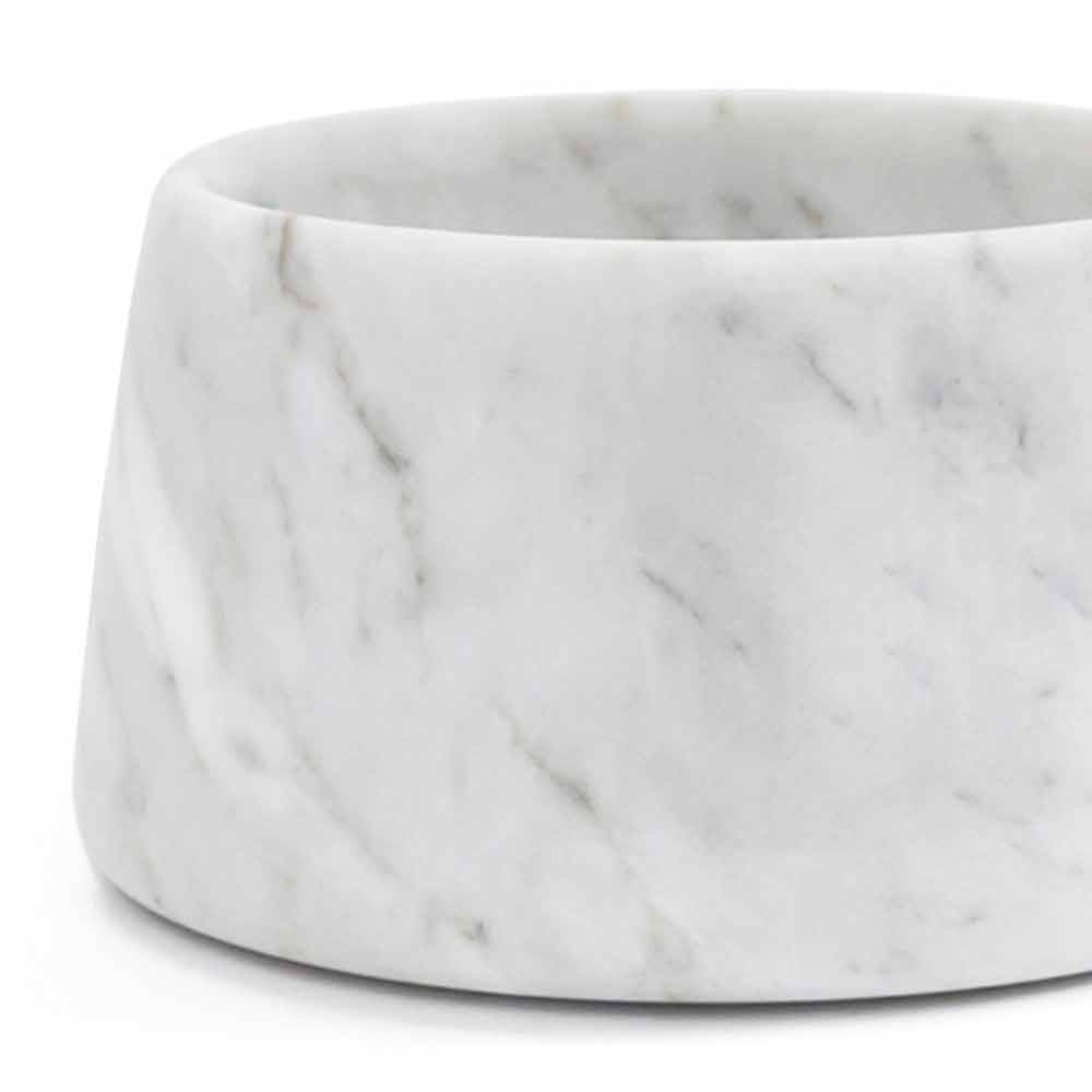 Wonderful bowl for dogs and cats characterized by the white or black marble of which it is composed. It is a unique piece as each block of marble used differs from the others for veins and shades.