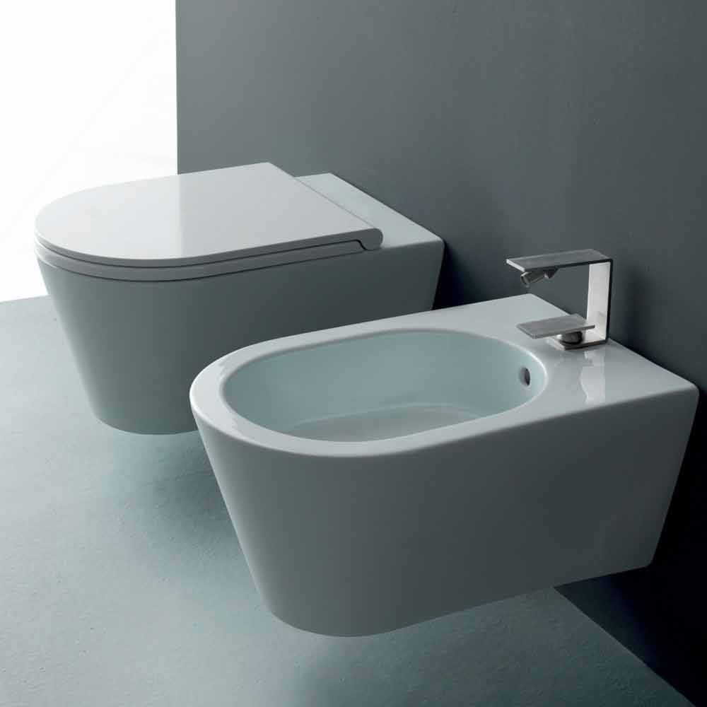 Modern Sun Round ceramic wall hung WC vase 57x37 cm, made in Italy