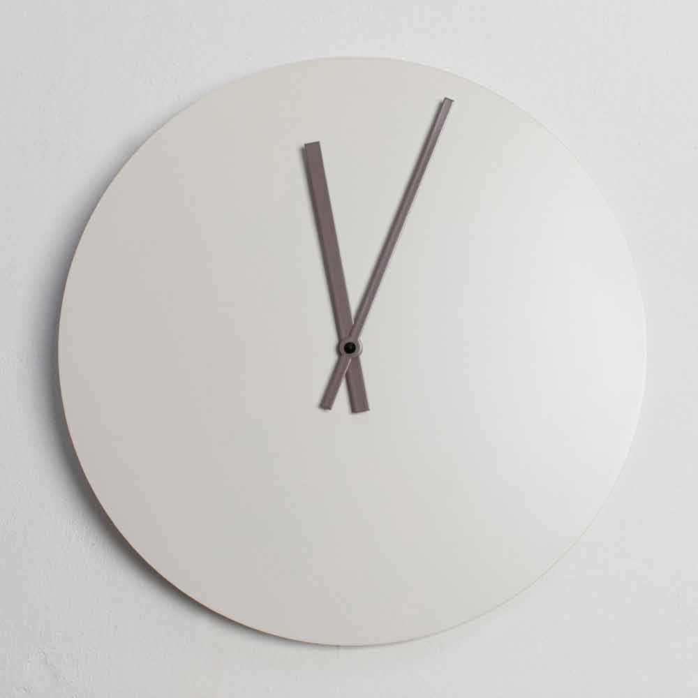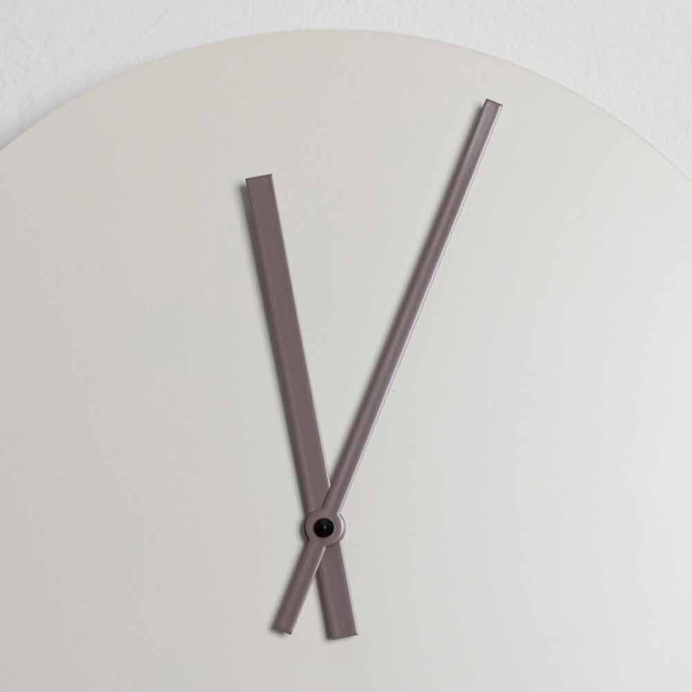 It is a minimal clock that lends itself to decorating different environments, giving warmth and refinement thanks to its sand tone. The peculiarity is given by the detail of the hands , which have an original and different color compared to the base. Choose to combine it with darker shades such as black, brown or blue, creating contrast for a modern and high-design effect.