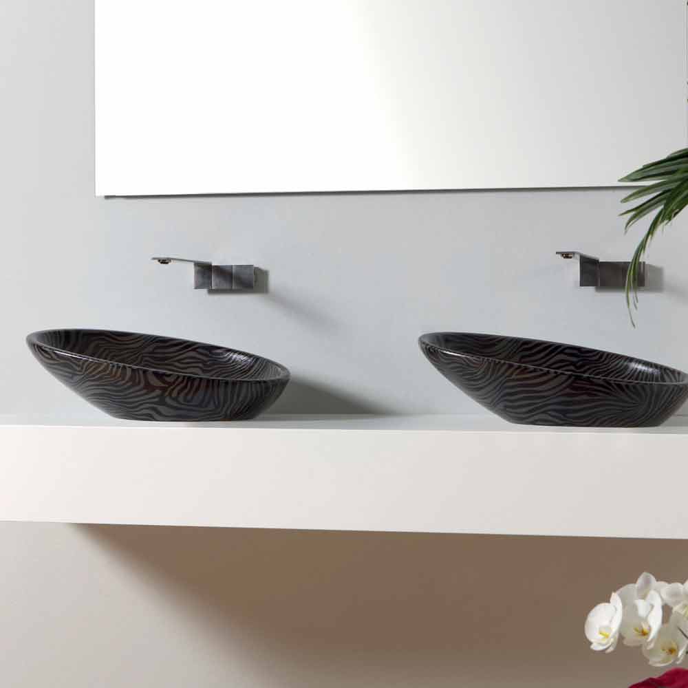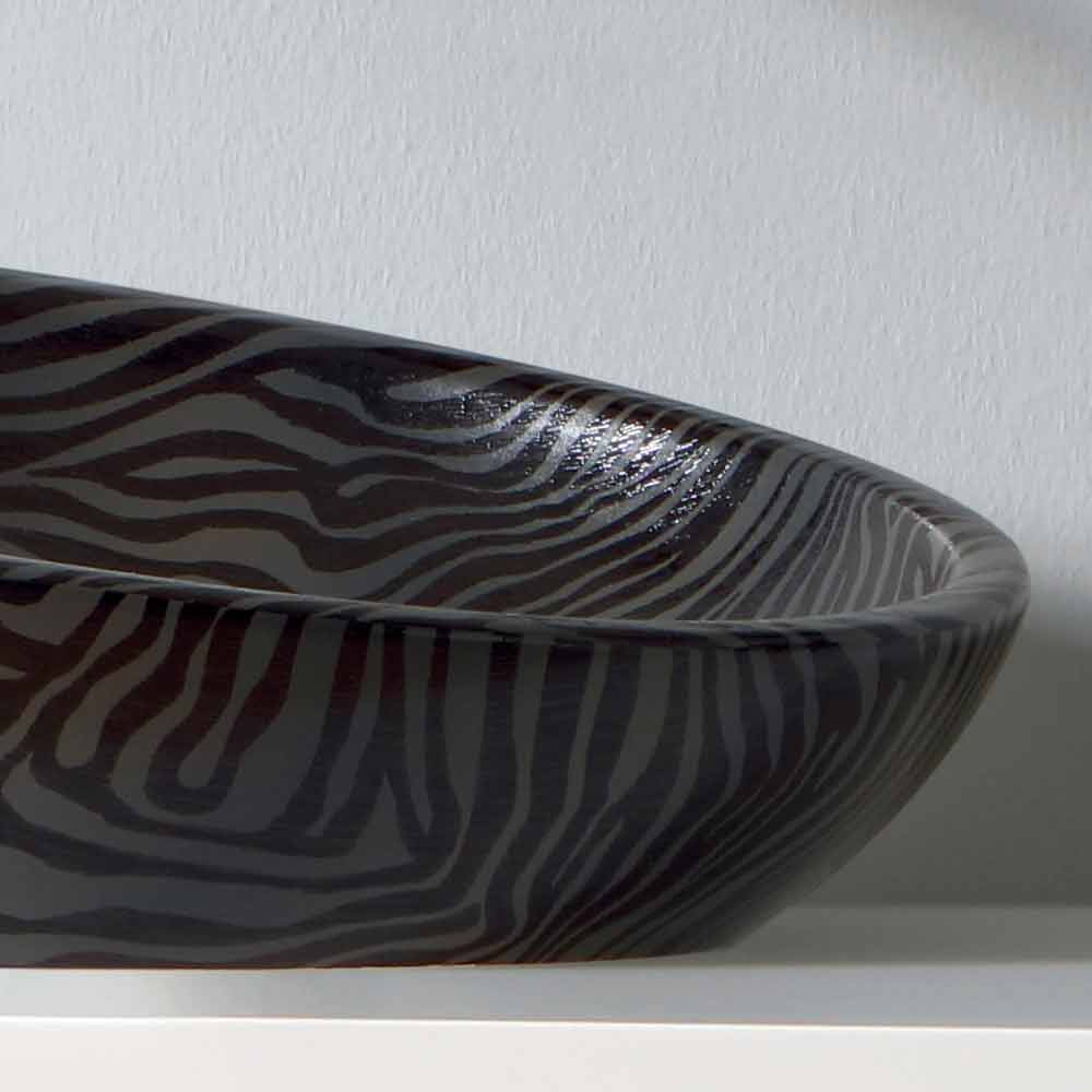 Modern ceramic countertop washbasin with silver zebra pattern Glossy made Italy