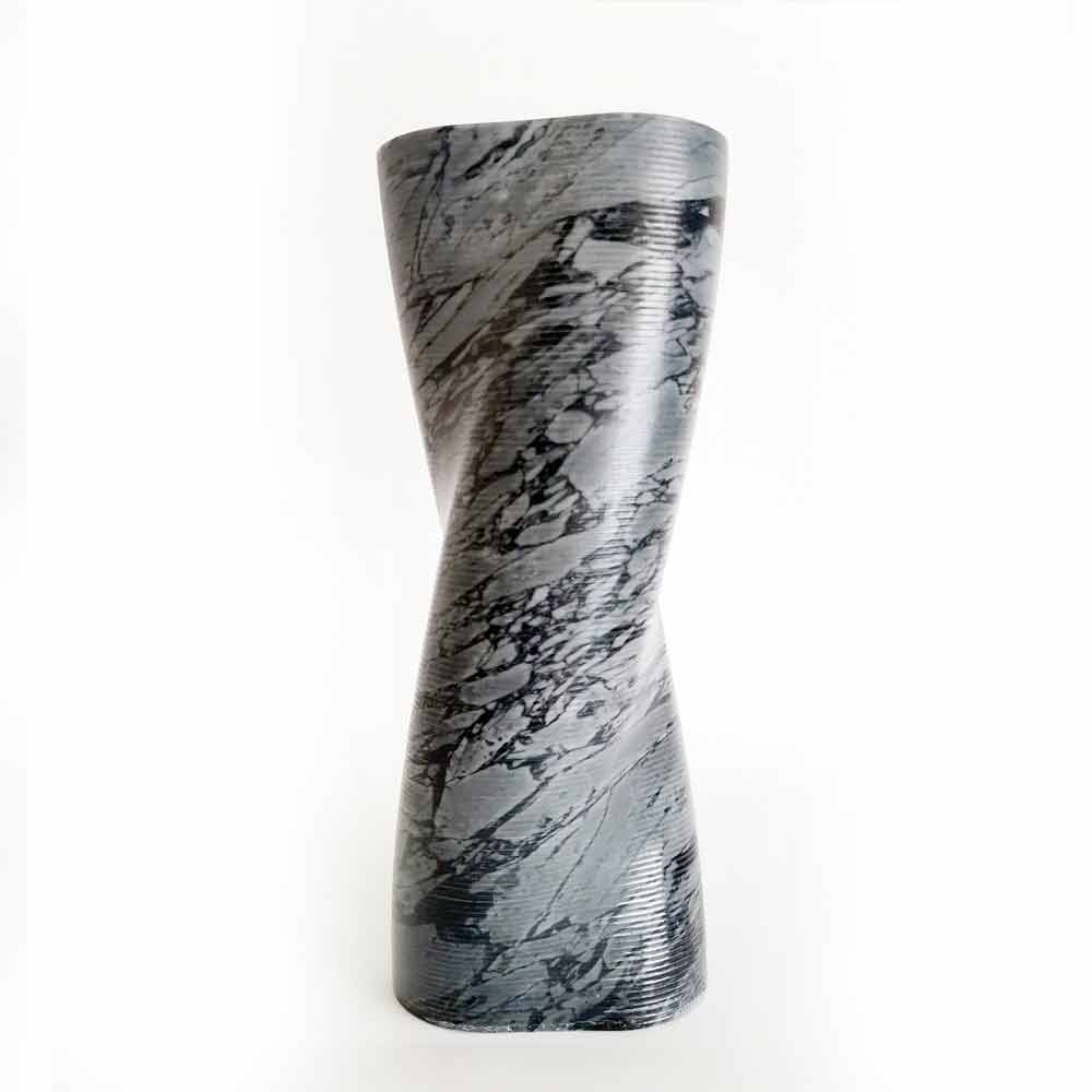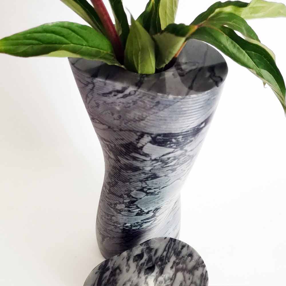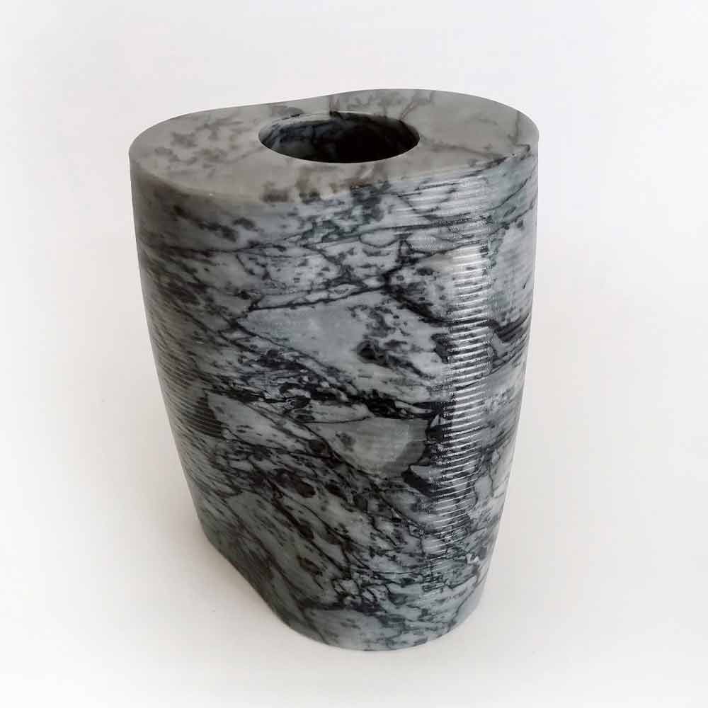 Modern design decorative vase made of flowered Bardiglio marble Made in Italy.