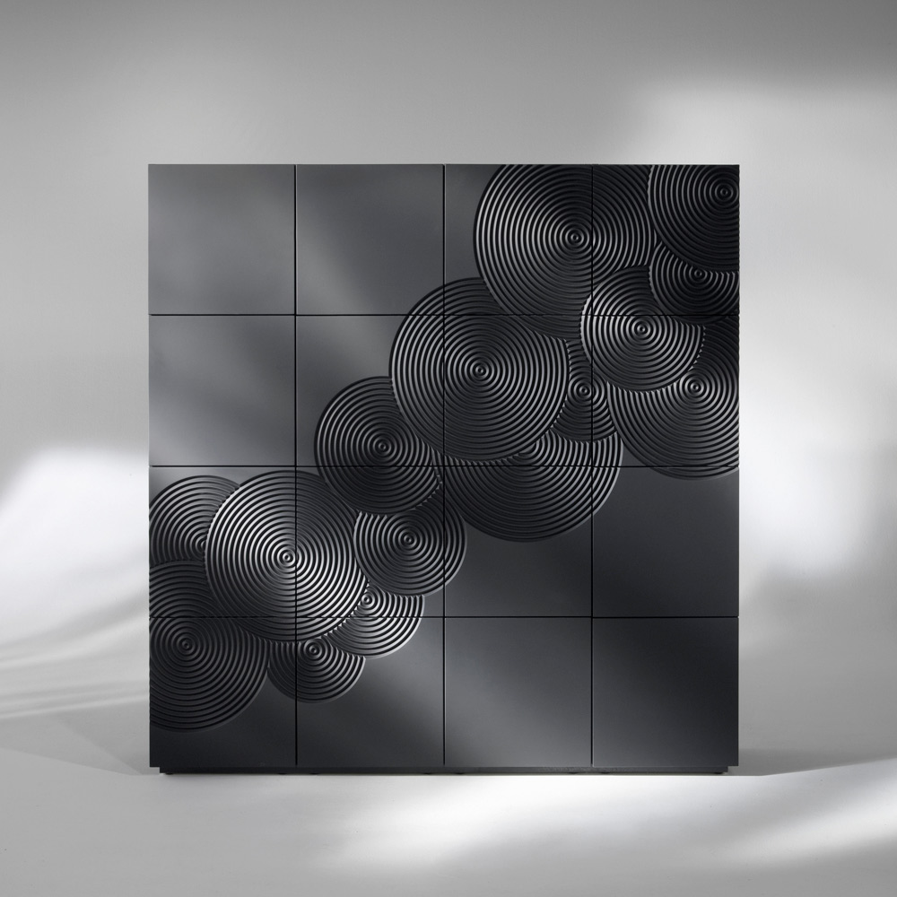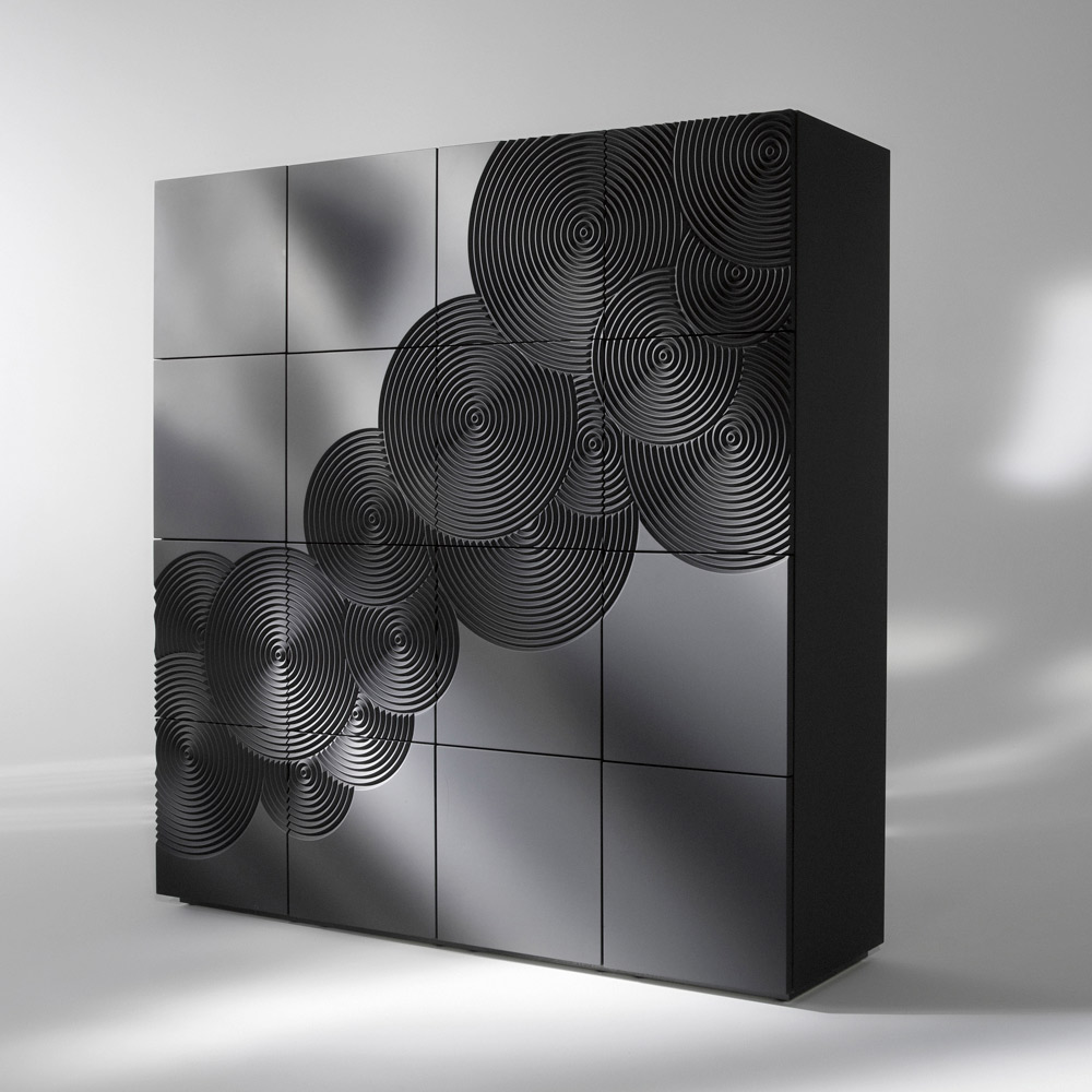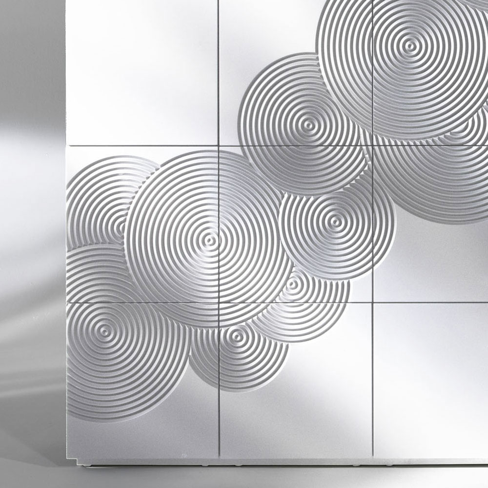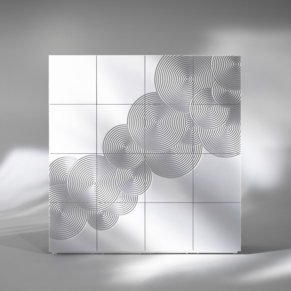 Modern design 8-door sideboard Ardesia, white, black or gold Sideboard with 8 decorated doors with 4 internal shelves in lacquered MDF, made in Italy. Available in white, black or gold satin lacquered colours.