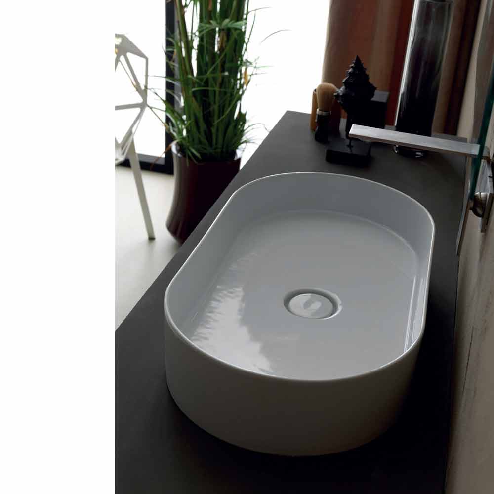 Modern design ceramic countertop washbasin Sun made in Italy 65x35 cm