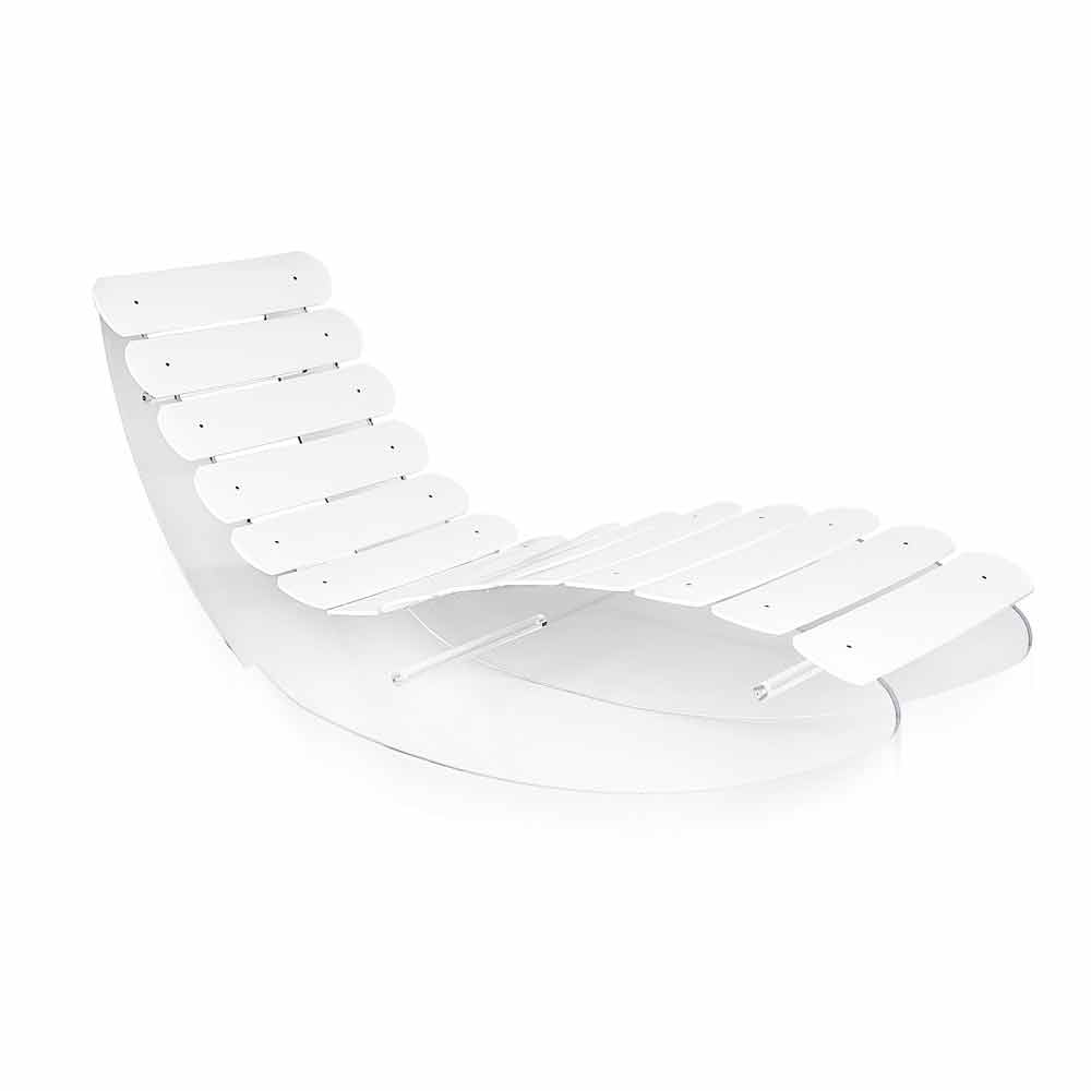 Sinous chaise longue made in 100% PMMA clear transparent plexiglass, reminiscent of the wings of a gull turning over the sea. The shiny white slats are made in 100% PMMA plexiglass from virgin polymers.