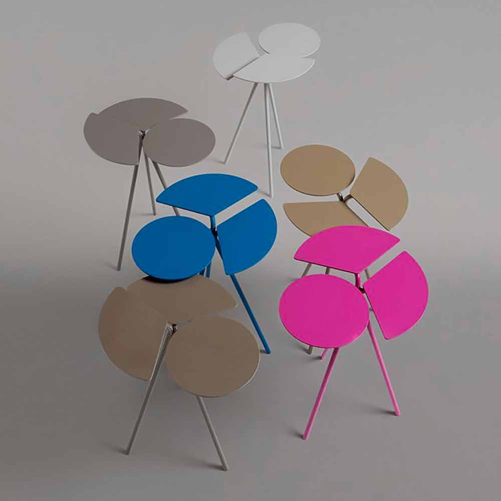 Round tripod coffee table for living room modern design in lacquered sheet metal in various colors, original top made in Italy.