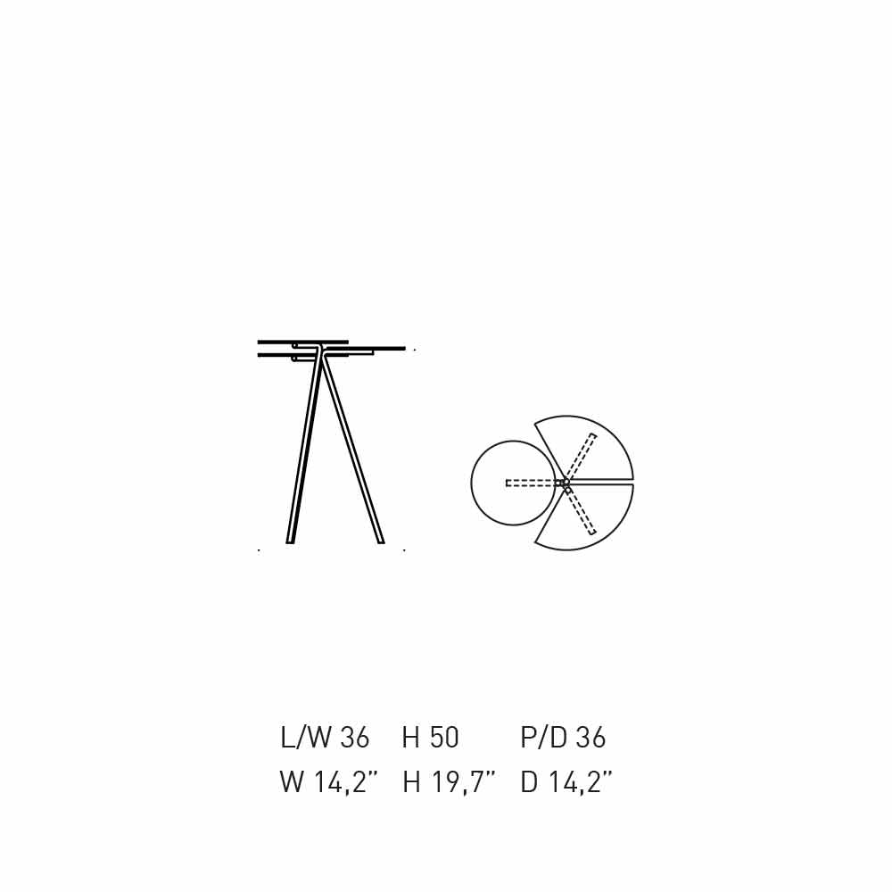 The top is in fact made up of three parts with two different geometries, which reflect the two wings and the central body of the bird, giving a pleasant and surprising lightness, thanks also to the slender three legs that support it.