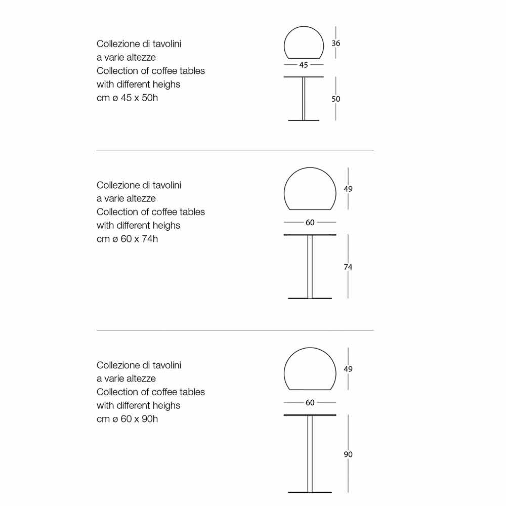 Design coffee table in metal in various colors and in 3 different sizes, luxury made in Italy.