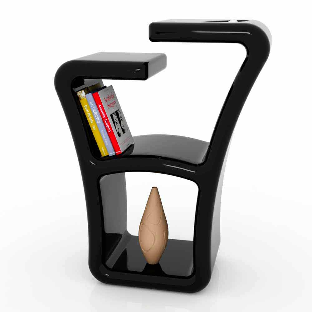 You can store vases, books and objects, A convenient elliptical hollow recess completes the functionality of this furniture piece, arranging itself randomly on the high shelf.