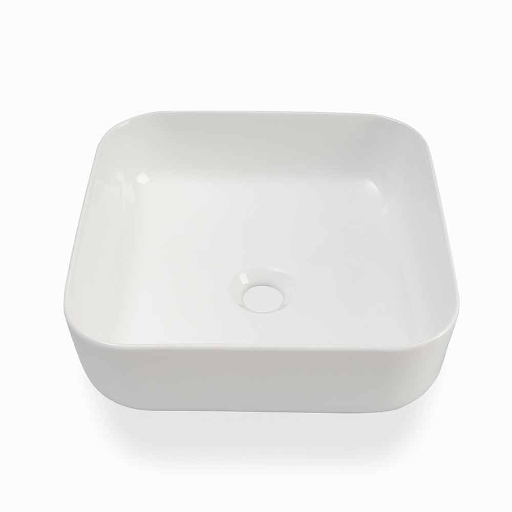 Modern style countertop washbasin handcrafted in Italy in glossy white ceramic.