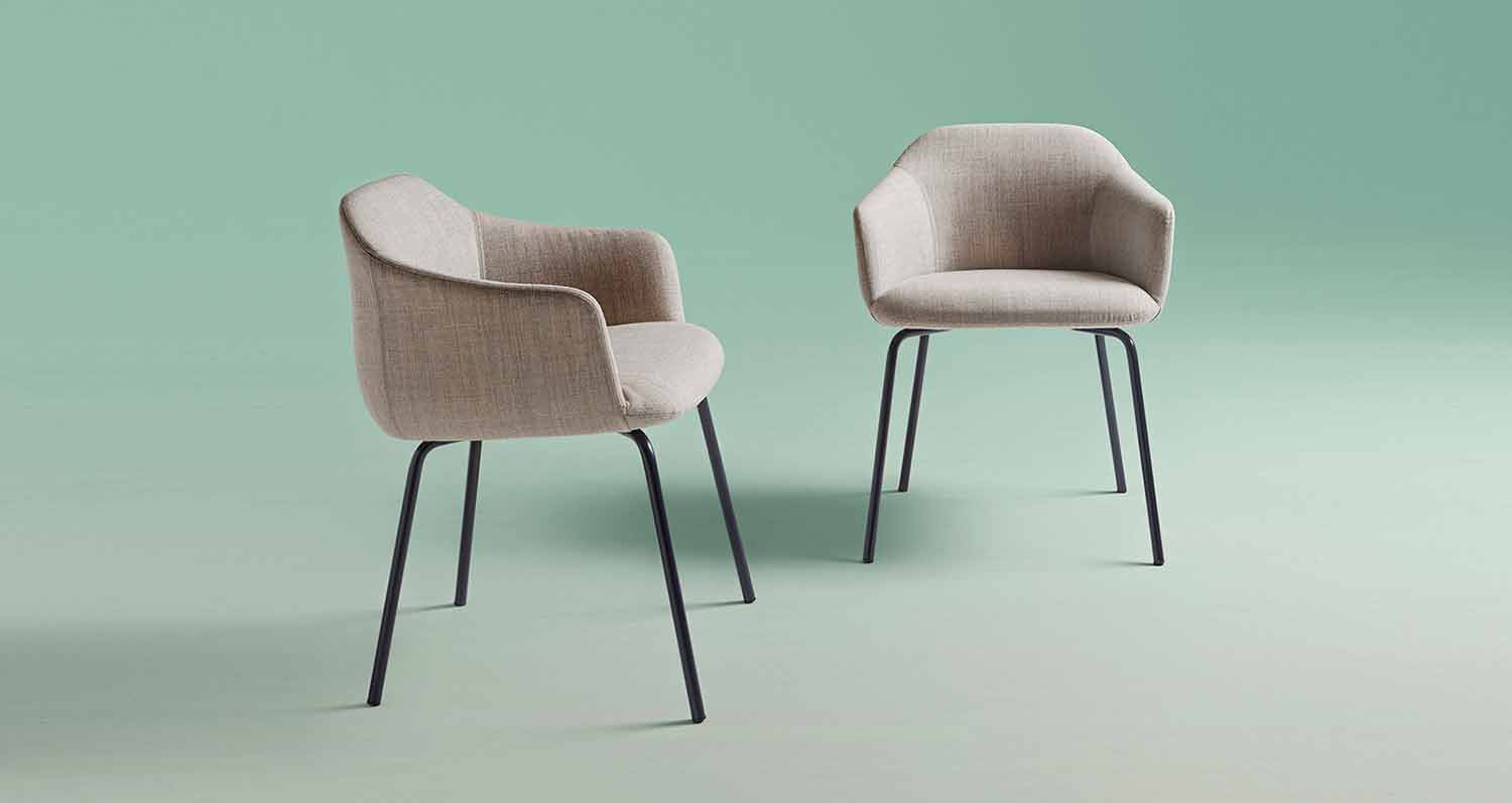 The design of this dining room chair is inspired by the delicacy of flowers, giving the comfort and softness of being placed on a bud thanks to the continuous and sinuous lines of the back and seat, both padded with polyurethane foam and resting on a thin iron structure.