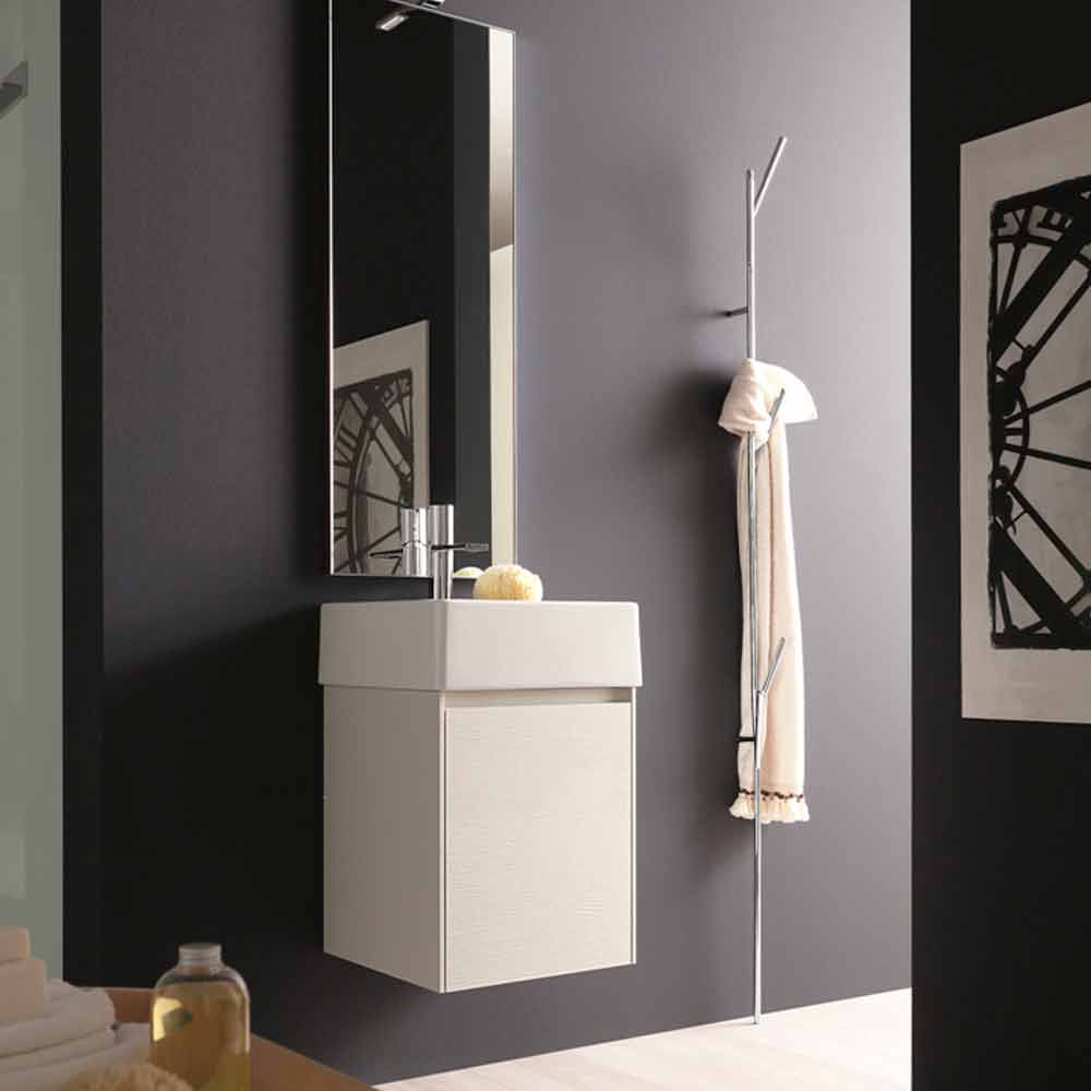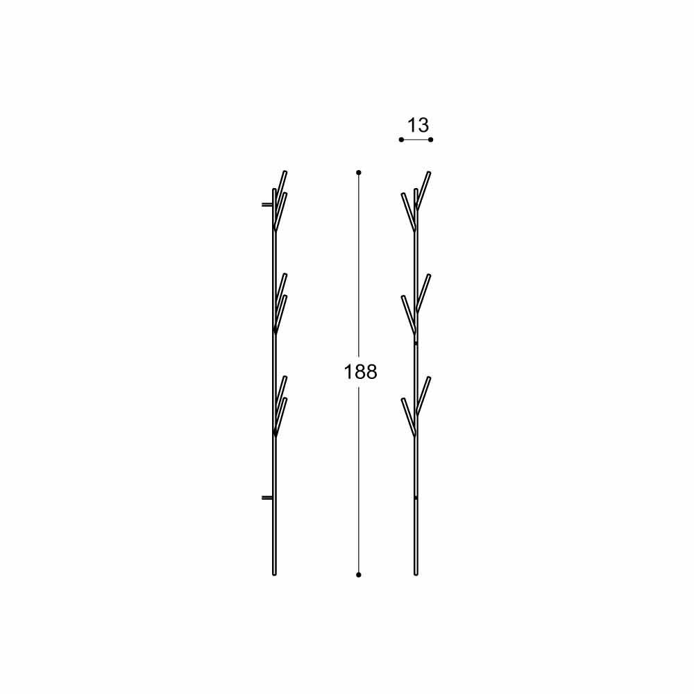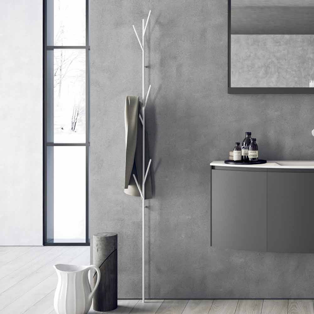 Stylized tree-shaped coat rack made of painted metal. Its "branches", arranged randomly, act as a towel hanger or bathrobe.