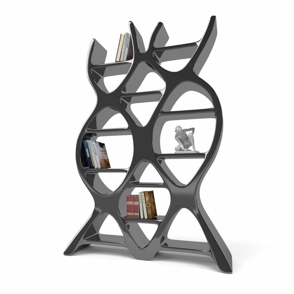 This modern design bookcase is a sculpture inspired by DNA, a source of life and knowledge. The soft and sinuous lines, combined with a strong scenic impact, make the DNA library suitable as an exclusive piece of furniture within the home furnishings. Its out-of-the-ordinary shapes make it ideal for literary bars or coffee bookshops. Solid Surface structure.