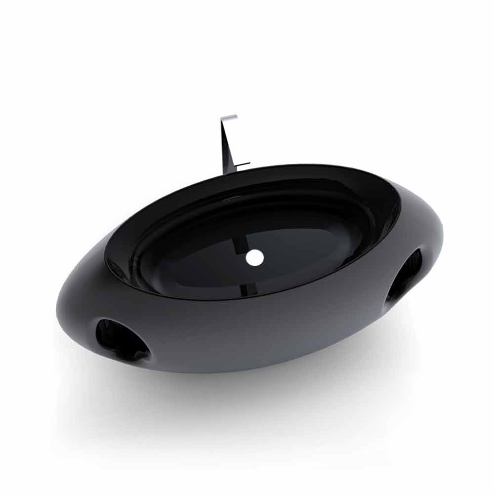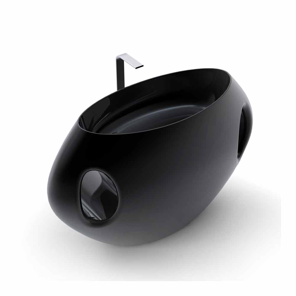 Scenic Solid Surface; washbasin with free installation, with shapes inspired by large classical vases. It is characterized by elliptical lines, wide and stretched. Its generous shapes and the two ellipses in the shape of "handles", show a profile that reminds us of the shape of a large vase. Its name "Pandora", in fact, refers to the most famous among the ancient vases belonging to the world of Greek mythology, the mythical Pandora's box.