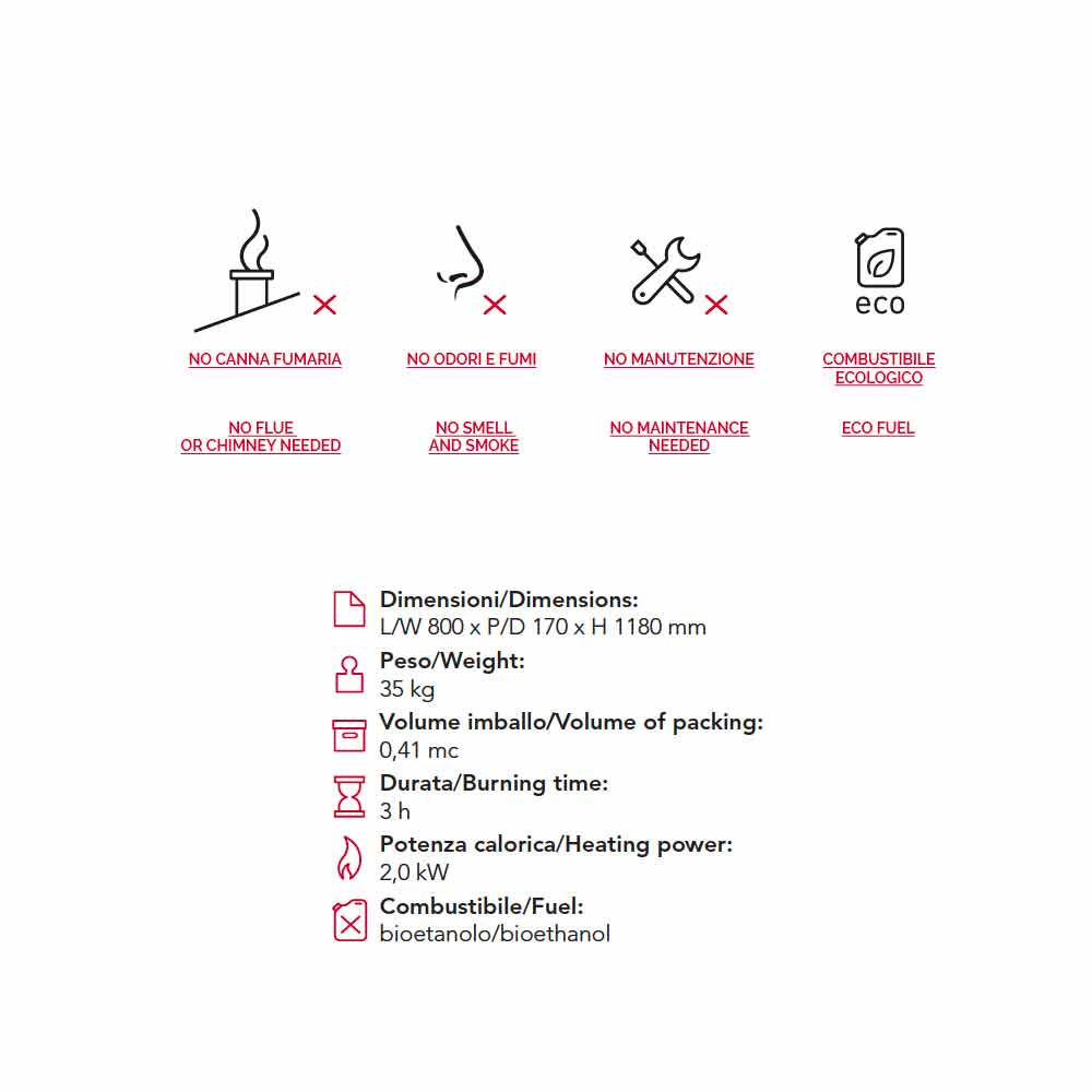 Modern design freestanding bioethanol fireplace Todd, made in Italy