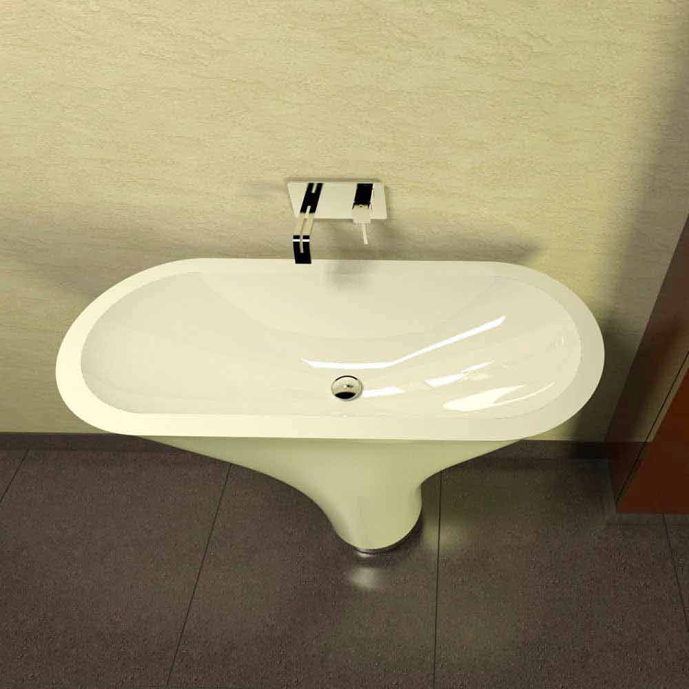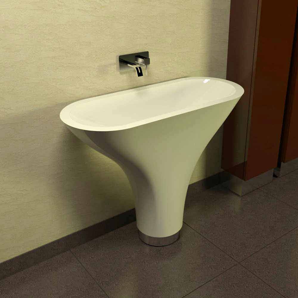An elegant column sink with generous dimensions that emanates a strong design personality. Flounder can be considered a classic emelent, but at the same time it's innovative thanks to the use of resin materials, combined with a steel plate to finish the column of the sink, making it a design object simply unique.