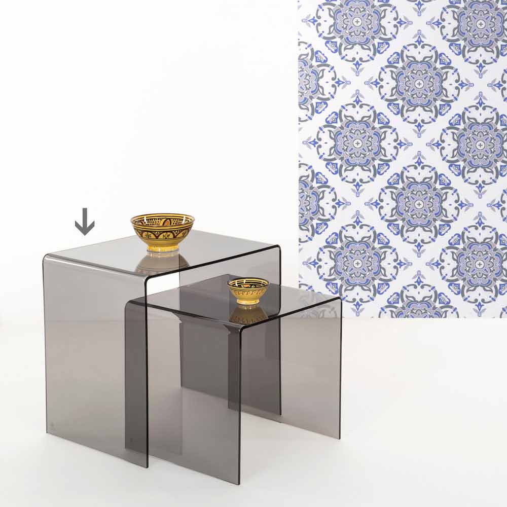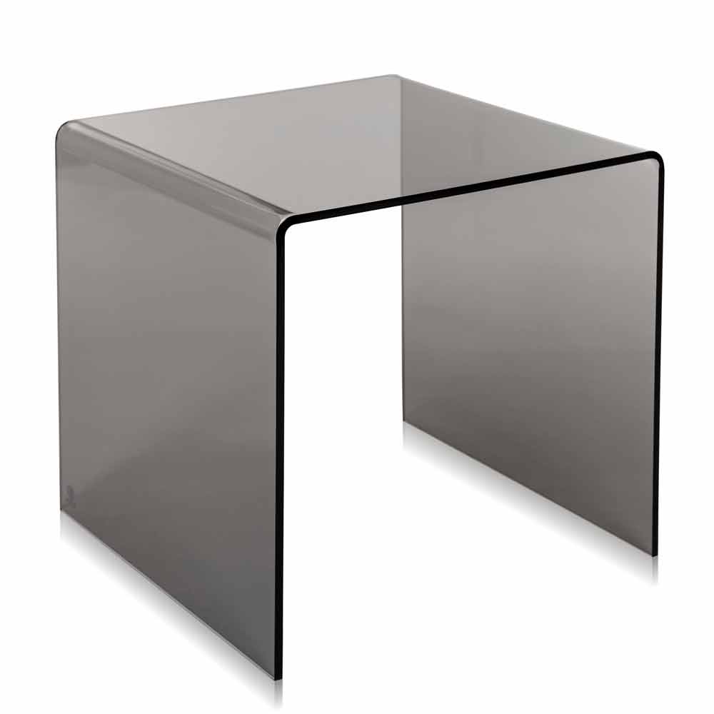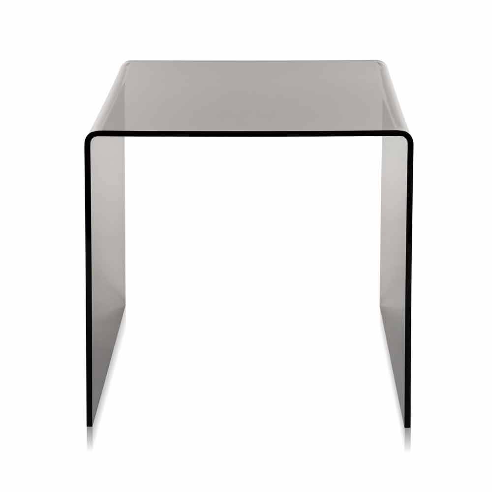 Modern design fumé side table 50x50 cm Terry Big, made in Italy Terry Big is made of 100% PMMA plexiglass from virgin polymers and it can be used both as a coffee table or as a bedside table. Its design is inspired by the geometries of the '80s. Laser cut and bent at high temperatures. Self supporting. It matches the Terry Small side table.