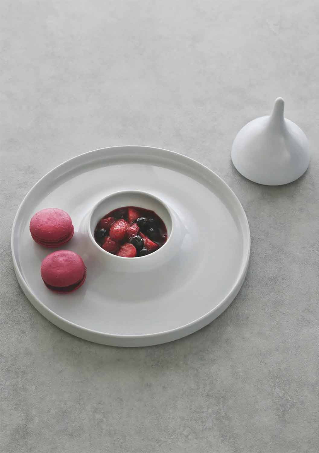 The design of this set of plates and aperitif bowls is ultra-modern and elegant, in line with the needs of the new global diet. A simple and not obvious solution for tastings and snacks in company, creating sophisticated and contemporary atmospheres.