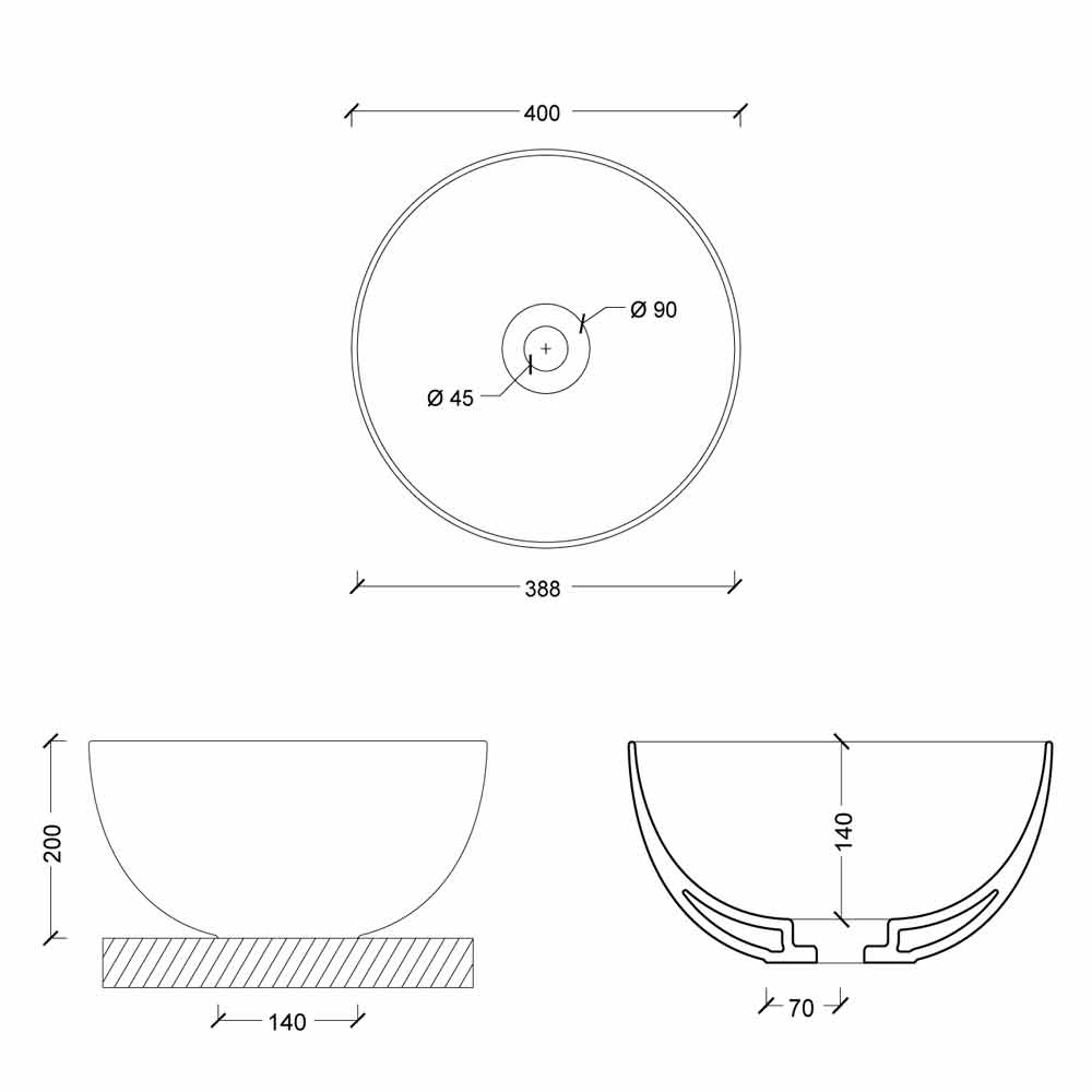 Modern design round ceramic countertop washbasin Star Round 40 cm, made in Italy