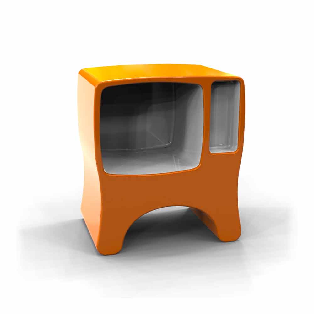 Catodico is a storage unit and, if necessary, a small bedside table. Its name was inspired by old cathode ray tube televisions.