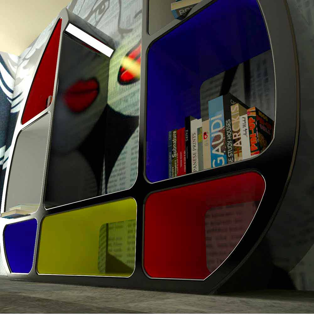 This bookcase can be placed in reception points, shops, waiting rooms or other public spaces.