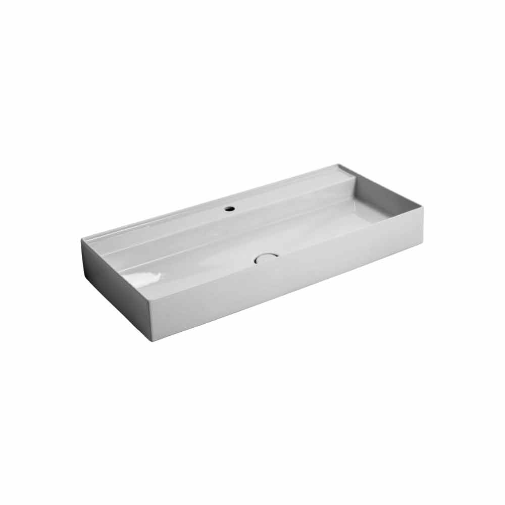 Modern ceramic wall hung washbasin Sun 100x45 cm made in Italy