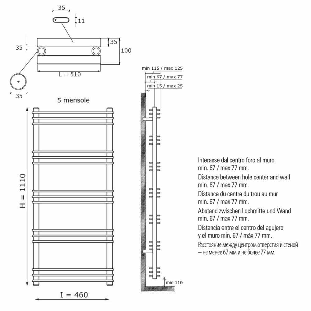 Dimensions *:- H 1110 x L 510 x P 35 x Inter. 460 mm x Output w (Īt50 *) 530; Yield w (Īt30 *) 290; Yield w (Īt26 *) 240.