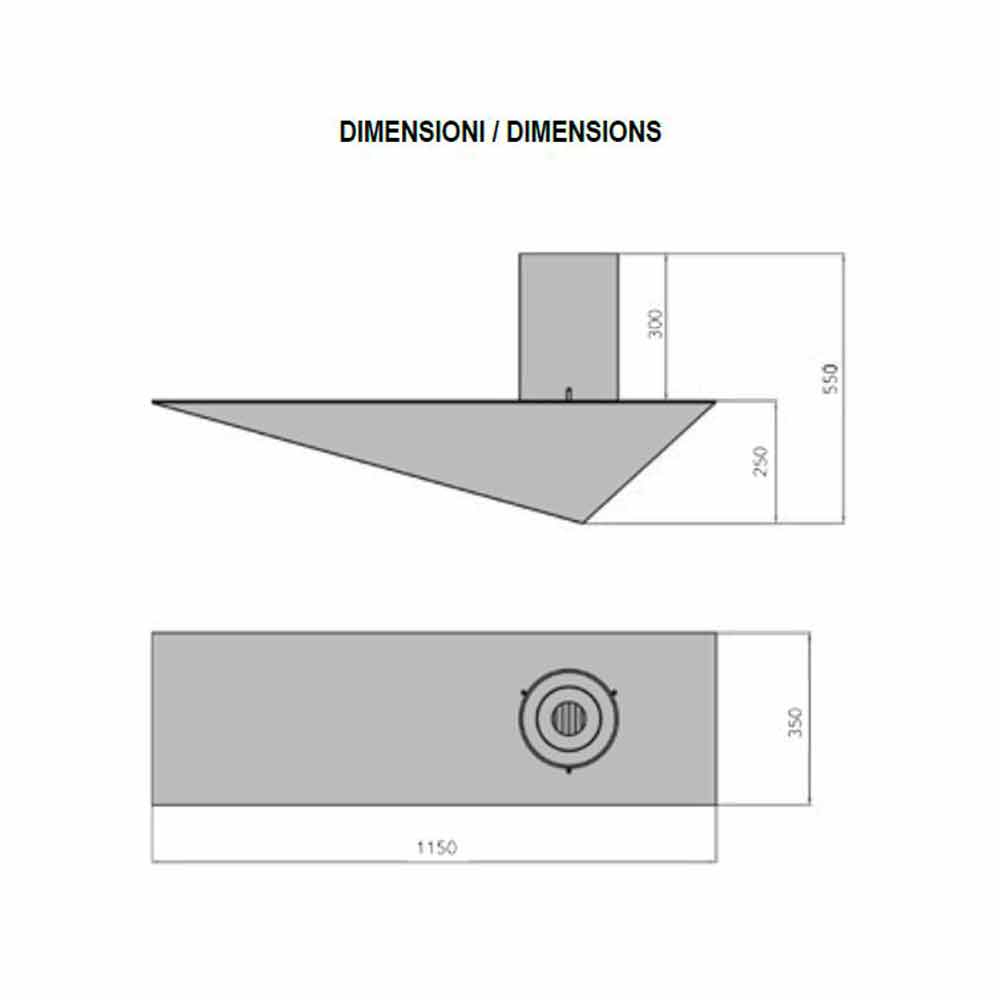 Wall mounted bioethanol fireplace in steel, modern irregular interior design, made in Italy.