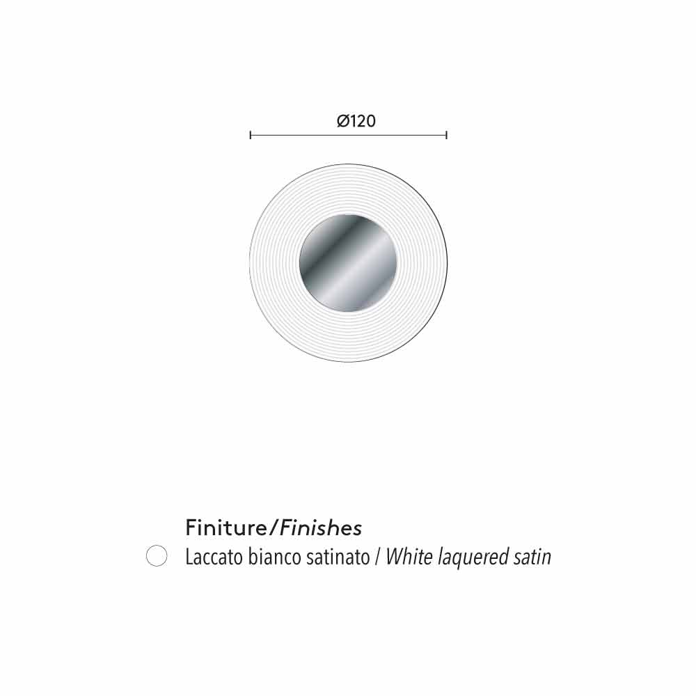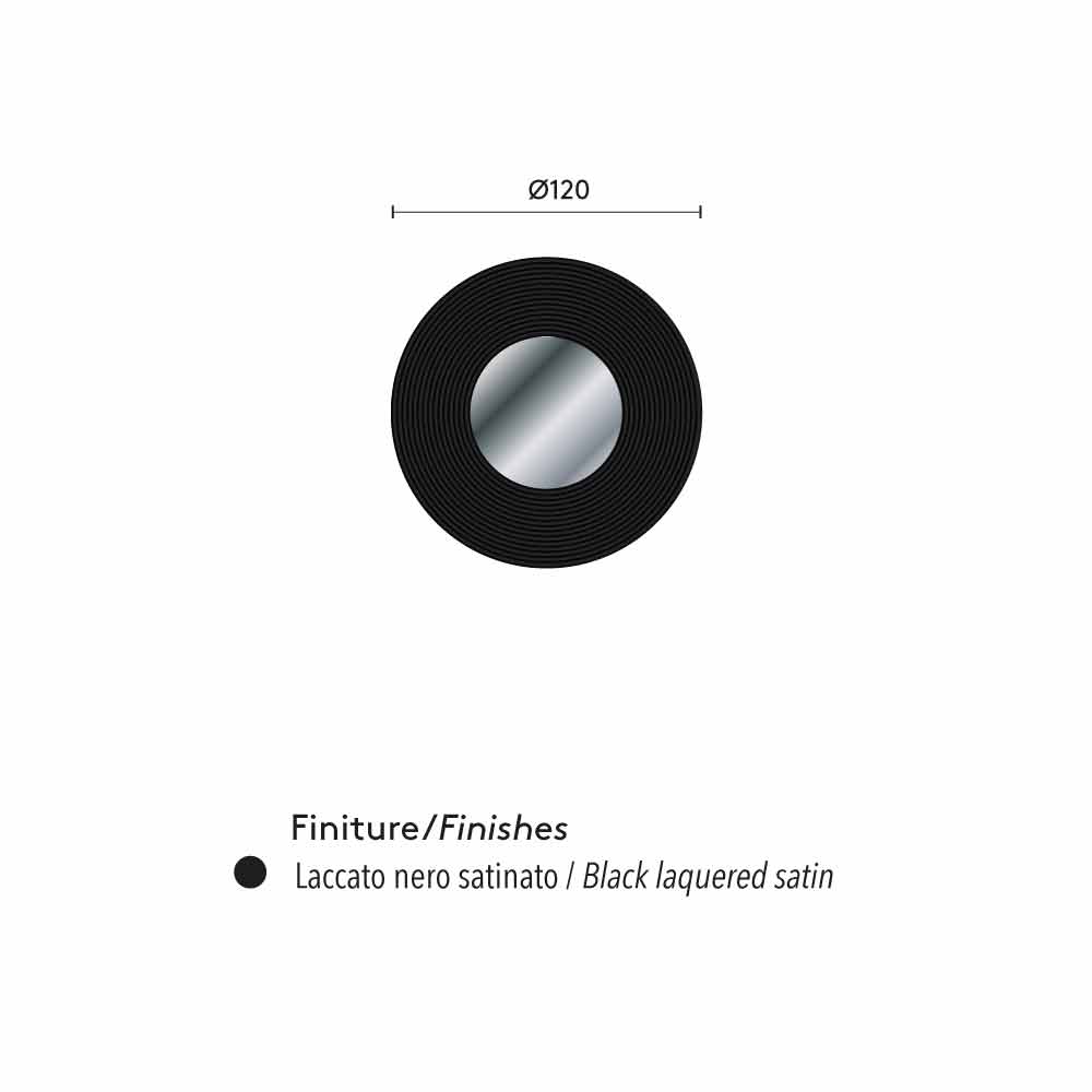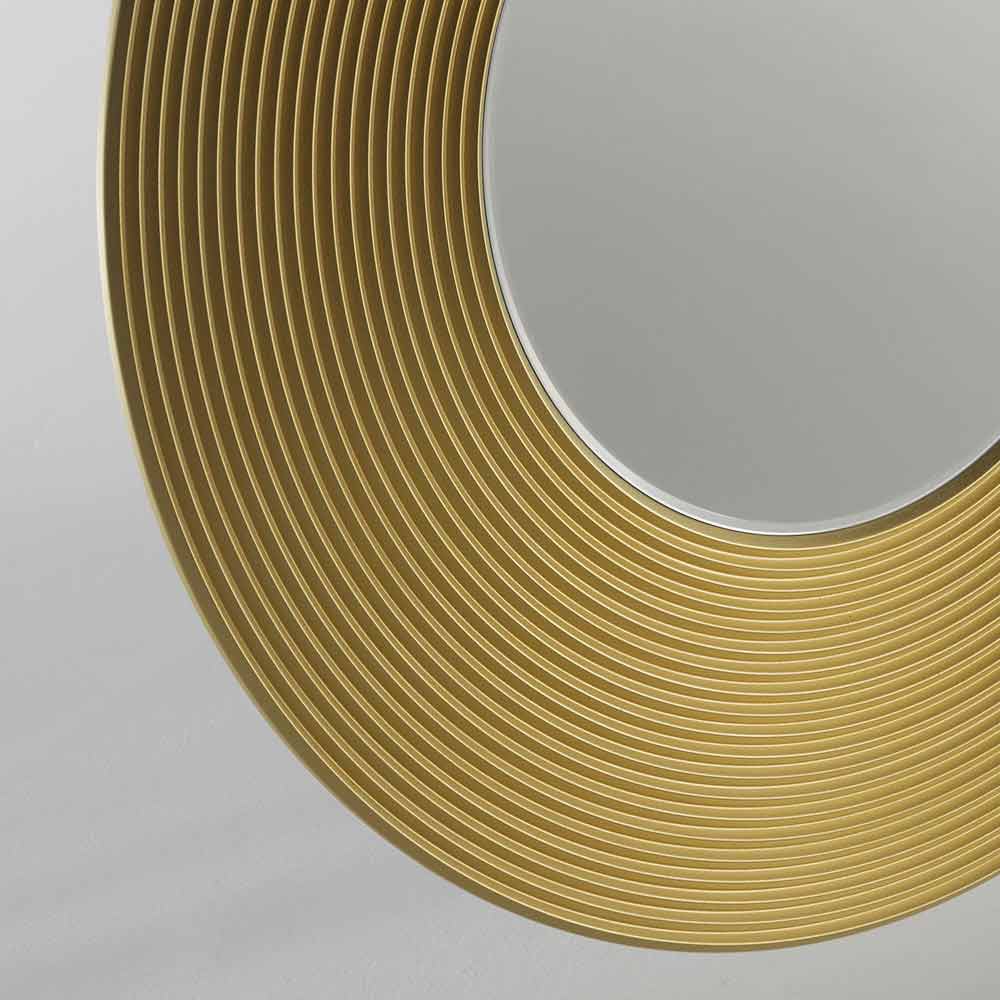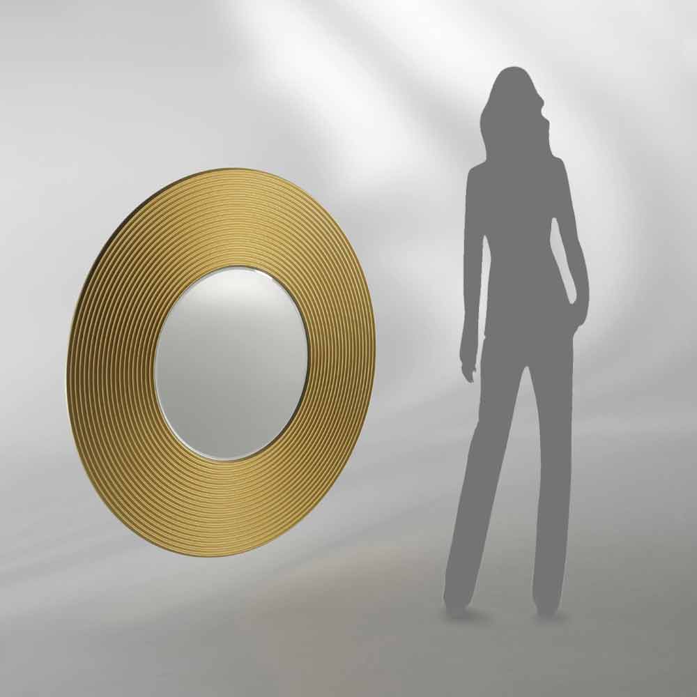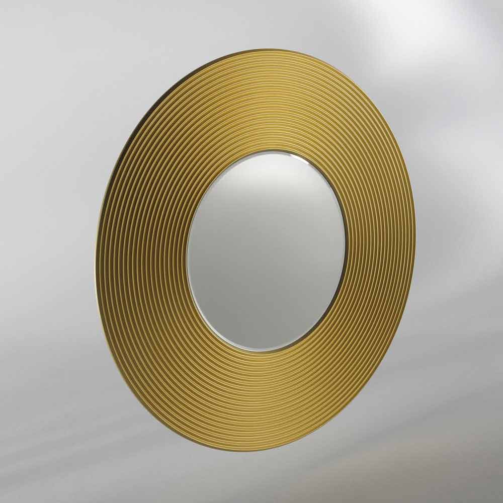 Designer mirror with a lacquered MDF support which is available with satinized white, satinized black or gold finish.