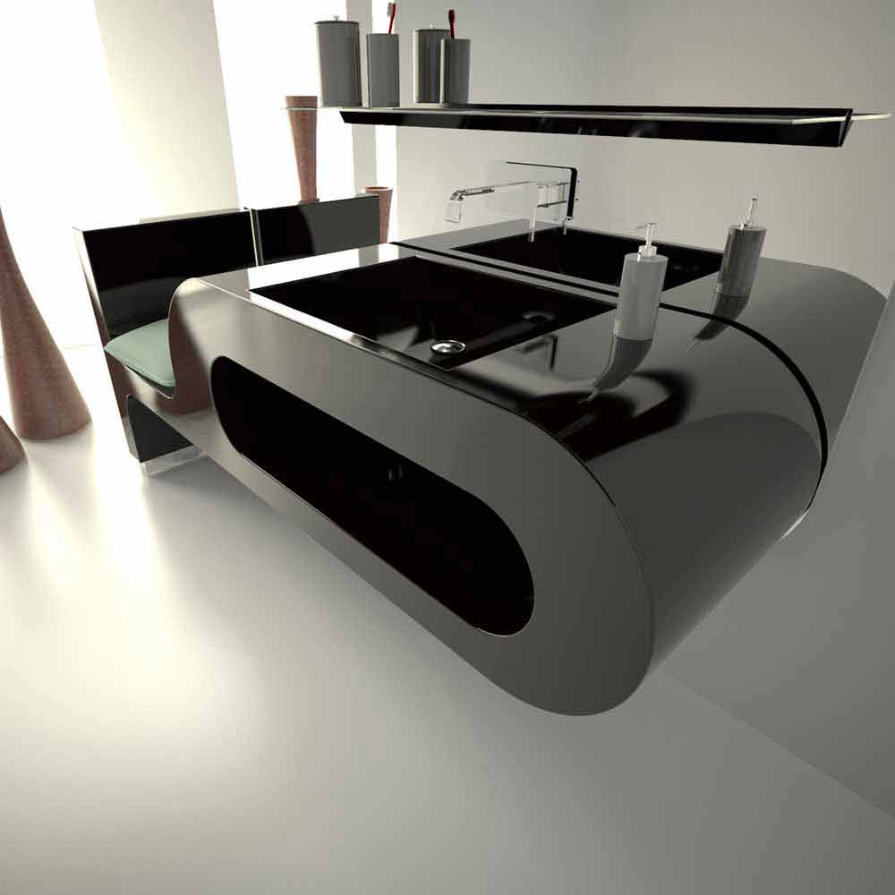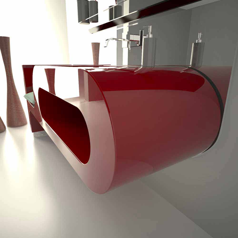 Modern design washbasin Garfish, available in black, white or burgundy.
