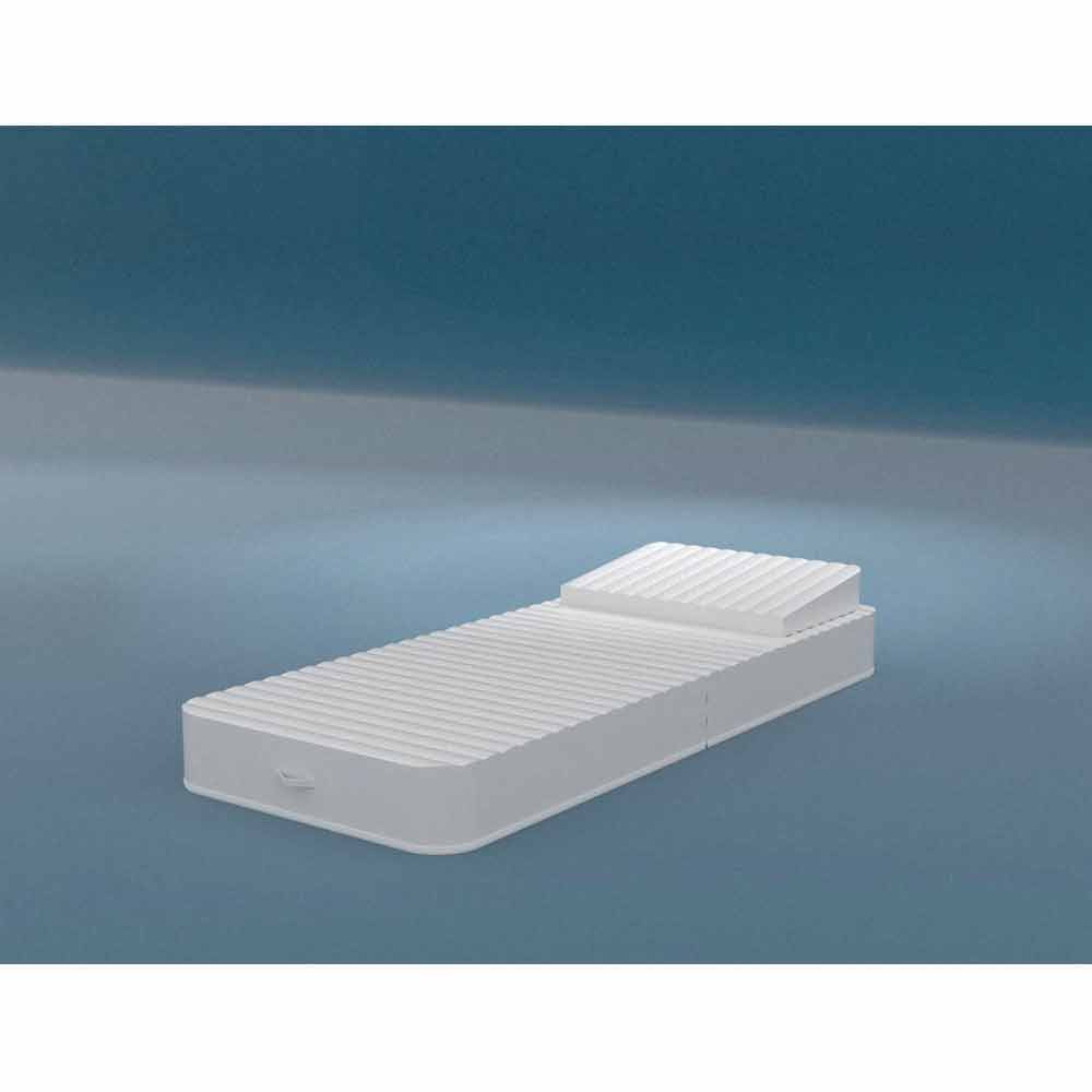 Its plexiglass pedestal allows to use it as a poolside chair and it prevents scratches, dirt and humidity. Once opened it becomes a practical flooating pool lounge chair.