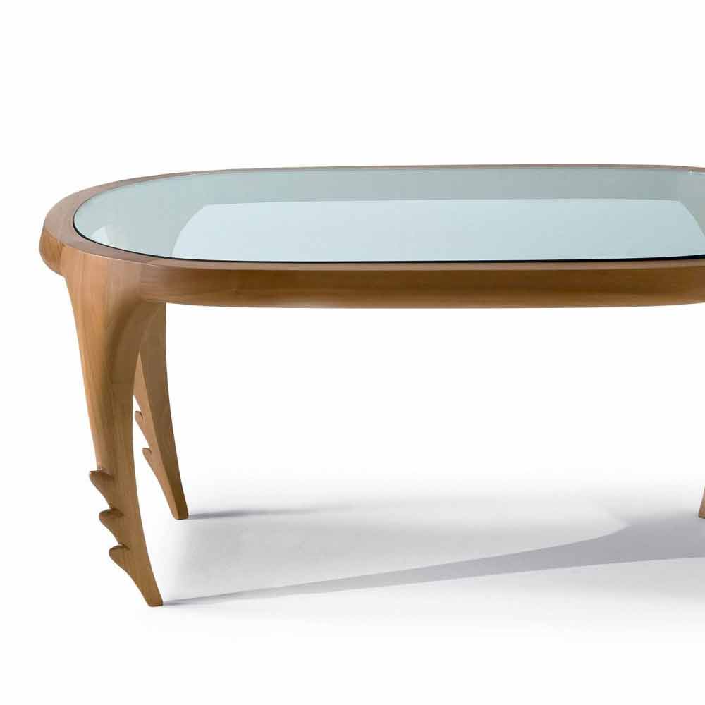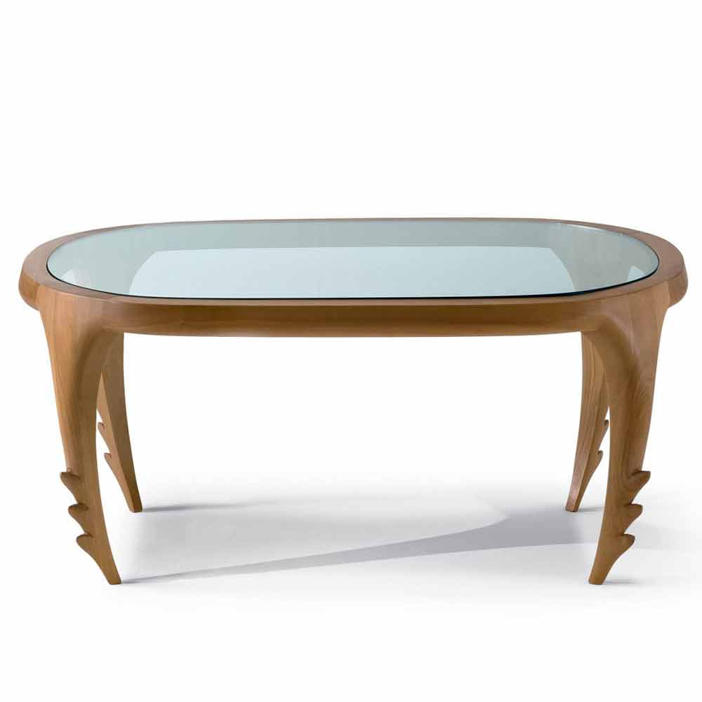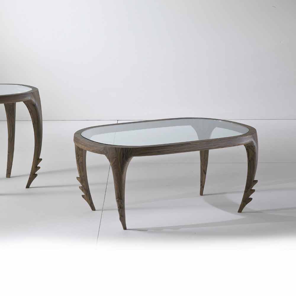 Modern design wooden cocktail table l.97xp.68 cm, Cecilia Cecilia is a coffee table characterized by a new and innovative design. Different materials such as wood and glass coexist, recreating an interesting contrast. The structure is made of ziricote wood or solid walnut: select from the drop-down menu the finish you want. The Cecilia table can be used to furnish the living area, the office or contract environments such as bars and hotels.