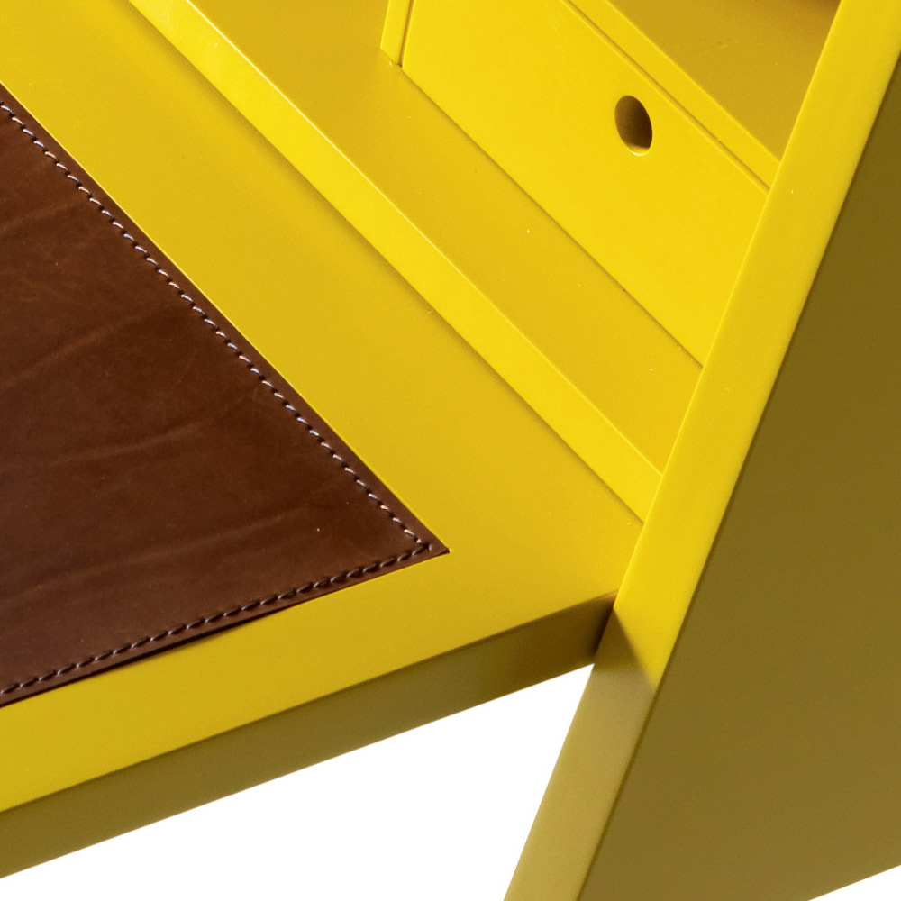 Modern design writing desk with a lacquered wood structure in RAL colors.