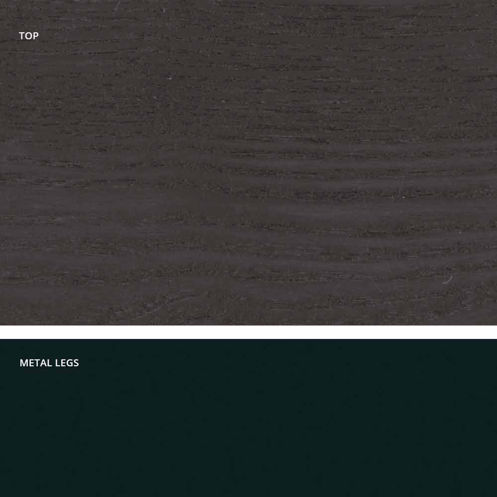 Dionigi is a dining table realized in Italy with a painted metal base and a MDF veneered surface (thickness 25mm).